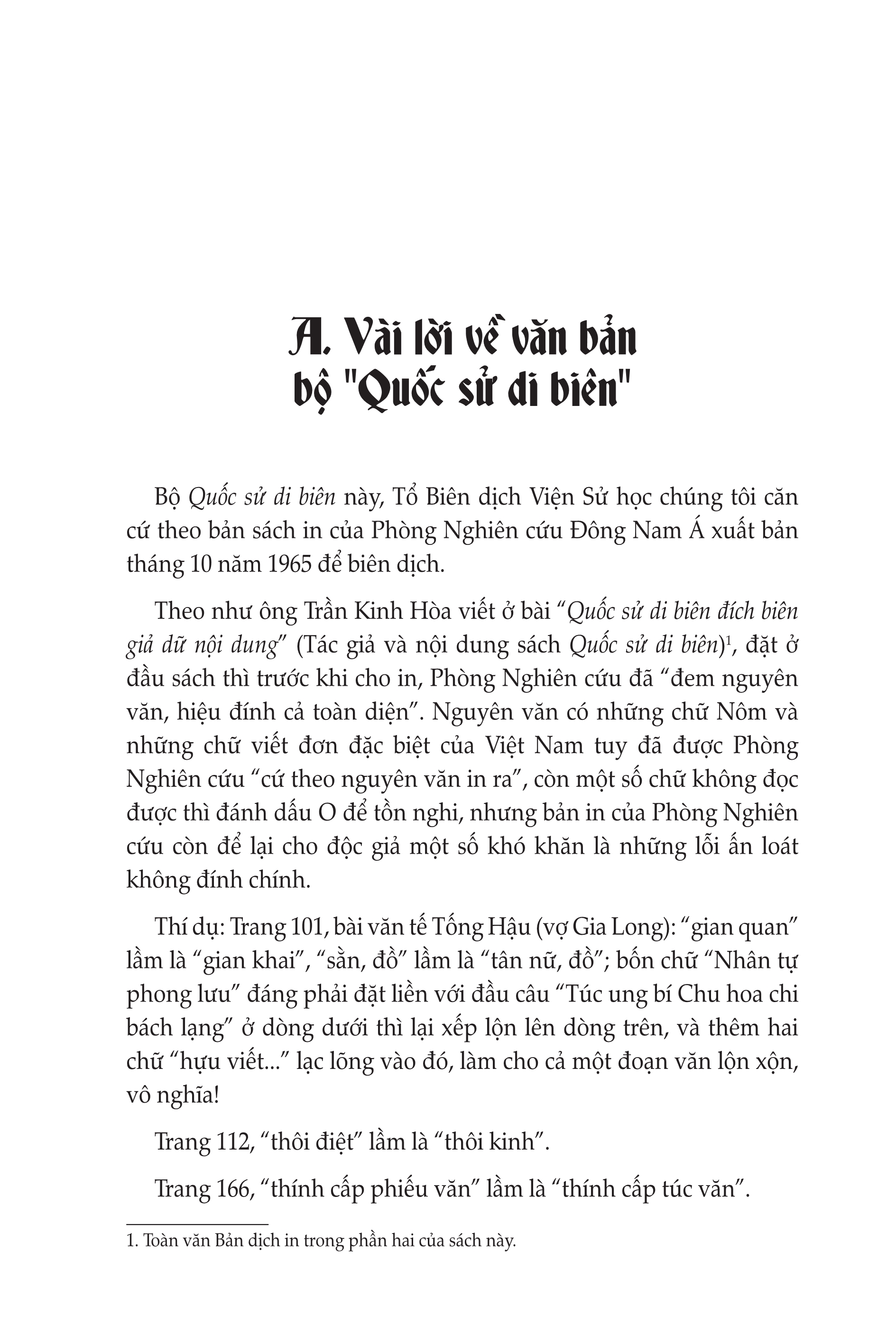 Quốc sử di biên ghi chép các sự kiện xảy ra trong giai đoạn 1802-1847, trải qua các đời Gia Long, Minh Mạng, Thiệu Trị; đề cập đến nhiều phương diện như: chiếu dụ, pháp lệnh, kiến chế, ngoại giao, xã hội, tập tụ Ngoài ra, sách còn chép khá tường tận về các nhân vật nổi tiếng trong lịch sử Việt Nam như Tuệ Tĩnh, Hà Tông Quyề Có nhiều chuyện nằm bên ngoài quốc sử triều đình Đại Nam thực lục, nên rất có giá trị nghiên cứu lịch sử. Hơn nữa, bản thân tác giả từng phục vụ trong nội các triều đình, từng giữ chức Thị giảng ở Viện Tập hiền và Kinh diên khởi cư trú nên rất am hiểu về các sự việc trong nội bộ triều Nguyễn, do đó, càng làm tăng thêm mức độ tin cậy của quyển sách này. Trong sách, Phan Thúc Trực ghi chú nhiều chỗ, liên quan đến các sự thật lịch sử.