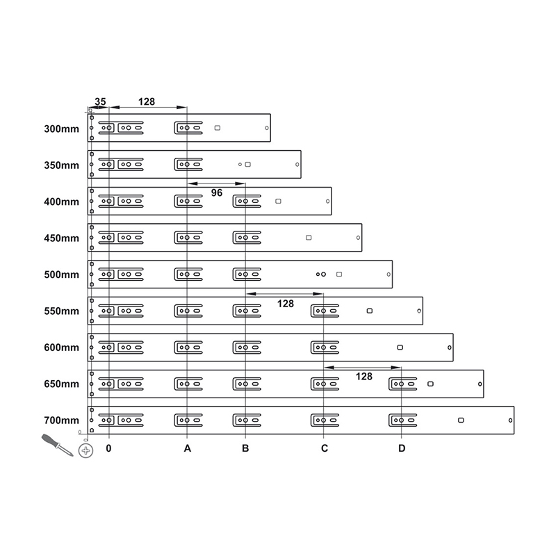 ✨Ray trượt, ray bi 3 tầng giảm chấn Hafele 300mm - 494.02.061
