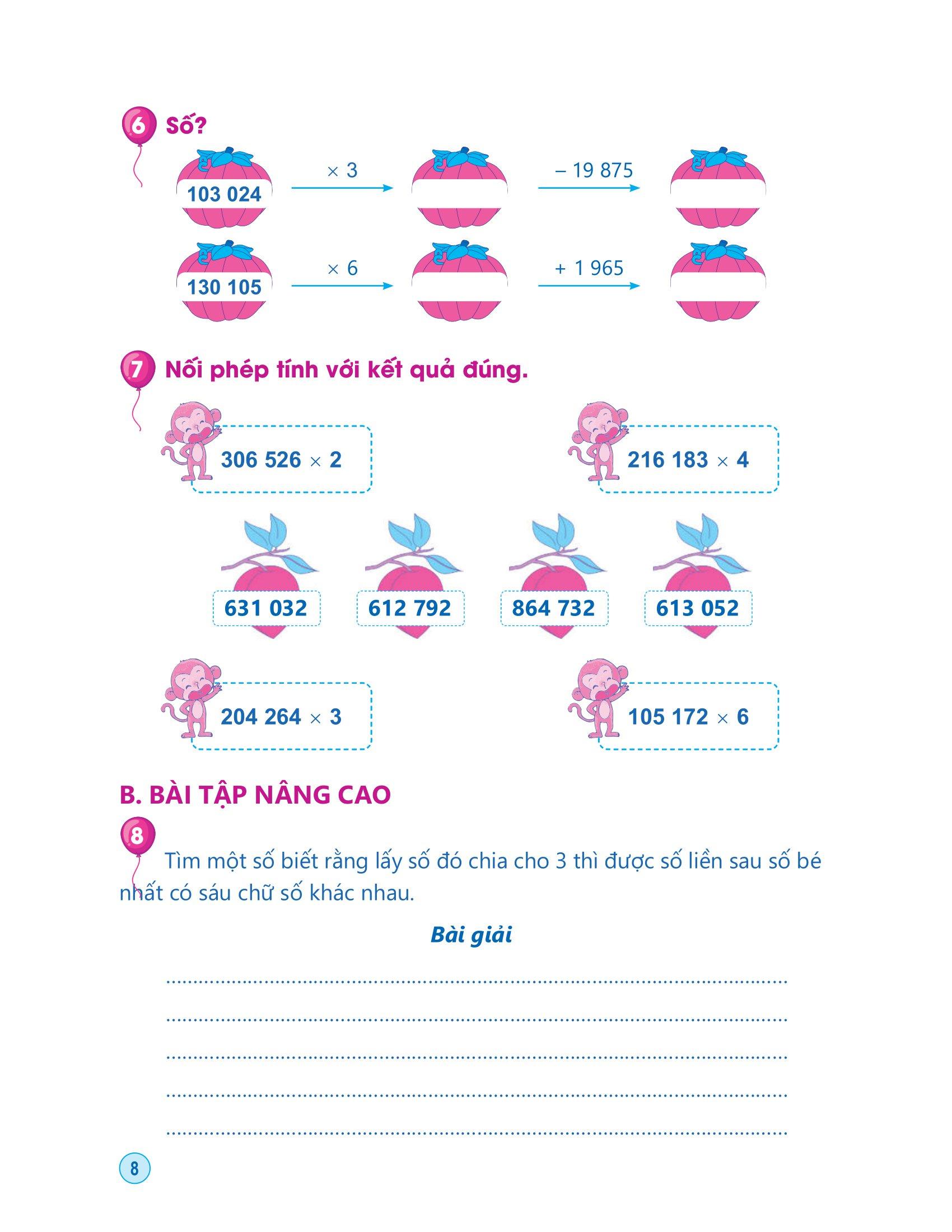 B. Bài tập nâng cao: Các bài tập vận dụng linh hoạt kiến thức của bài học đó và các bài học trước để phát triển năng lực tư duy toán học.