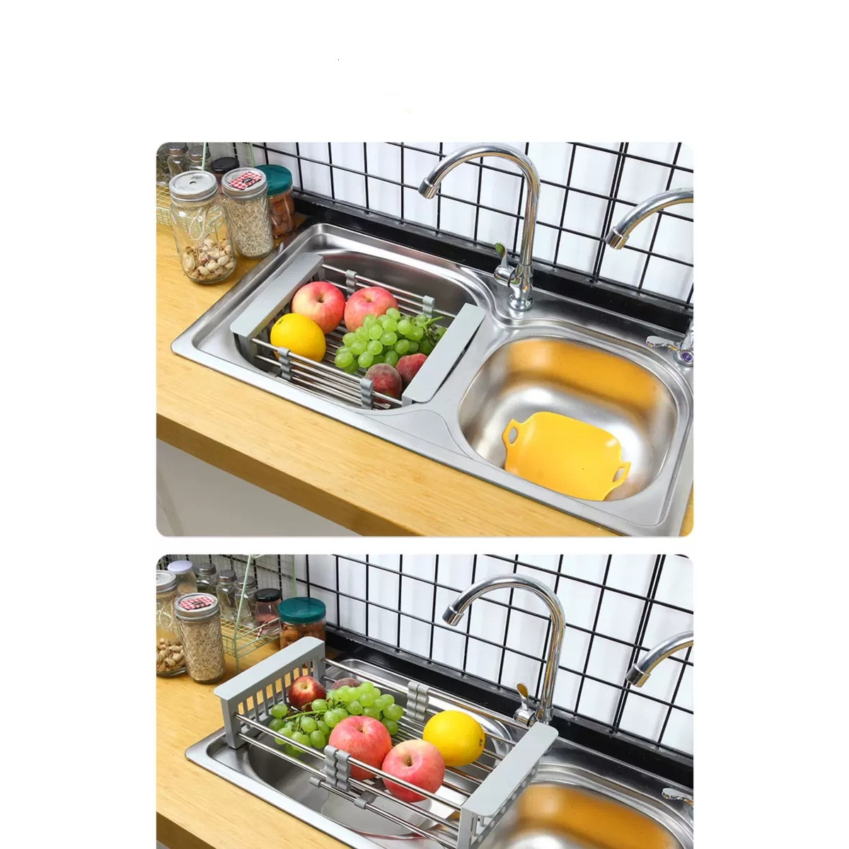 Rổ Rửa Rau Củ Quả Bằng Thép Không Gỉ Có Thể Thu Gọn, Giá Úp Chén Đĩa Ráo Nước Tiện Dụng Cho Bồn Rửa