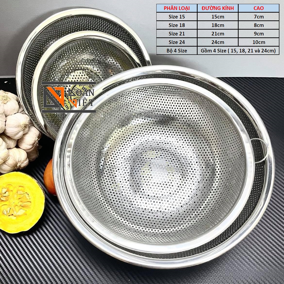 cấp, không rỉ Kích thước : nhiều size. Khách Mỗi sản phẩm gồm 1 thau , khách xem và chọn giúp shop : SIZE 15, 18, 21, 24 cm hoặc "Bộ 4 Size" Chất liệu inox không rỉ, sáng bóng