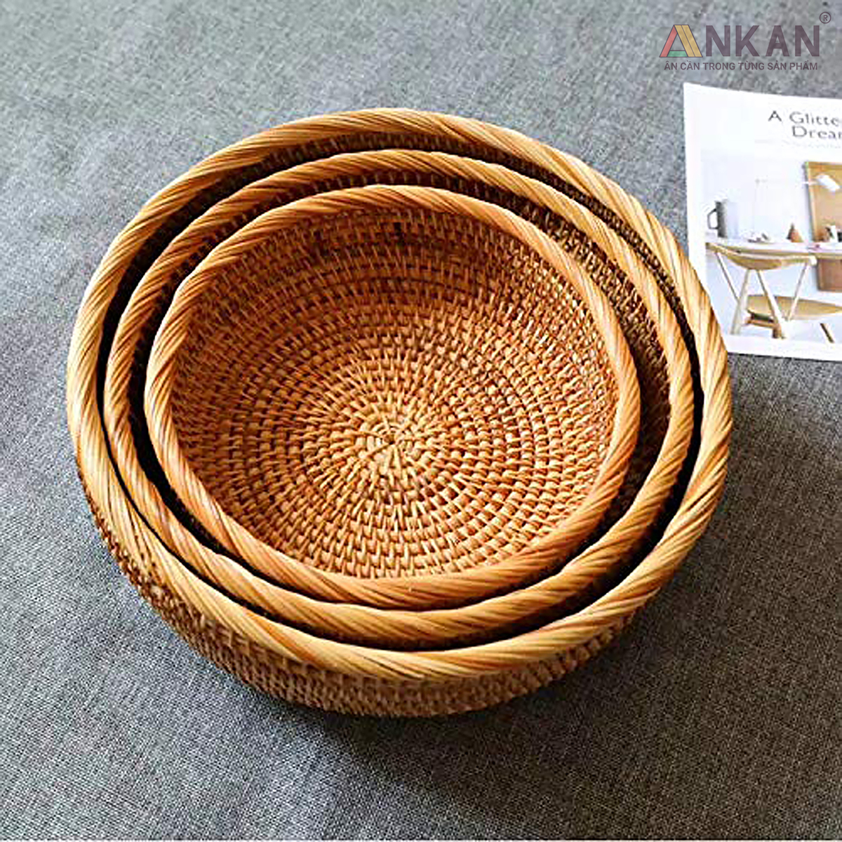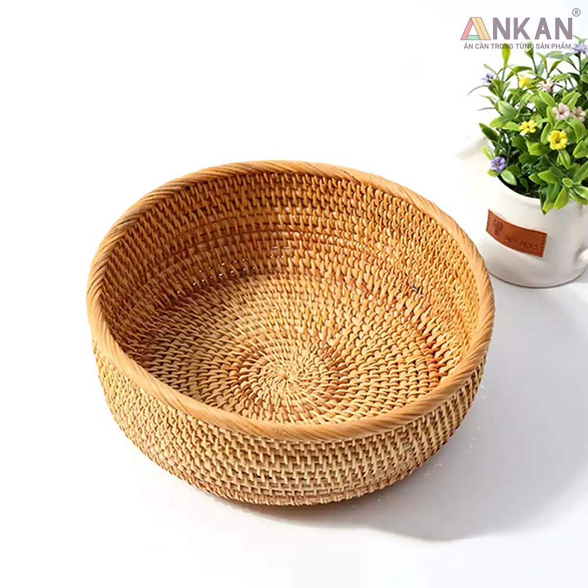 Khay Mây Khảm Trai Thủ Công ANKAN – Decor Trang Trí Nhà Cửa, Đựng Bánh Kẹo, Trái Cây Lưu ý: Hiện tại nhà bán không xuất dược hóa đơn VAT, chỉ có thể xuất hóa đơn bản lẻ. Mong khách hàng thông cảm. Bạn đang tìm một chiếc khay mây khảm trai vừa đẹp – tiện – sang trọng để trang trí bàn ăn, góc decor hay dùng trong bếp? - Chất liệu mây ép tự nhiên – đã sấy khô chống mối mọt, an toàn khi tiếp xúc trực tiếp với thực phẩm - Đáy khảm trai lấp lánh – ánh ngọc sang trọng, tạo điểm nhấn nổi bật trong không gian - Đa năng, dễ sử dụng – đựng bánh kẹo, trái cây, vật dụng nhỏ hoặc làm phụ kiện chụp ảnh decor -