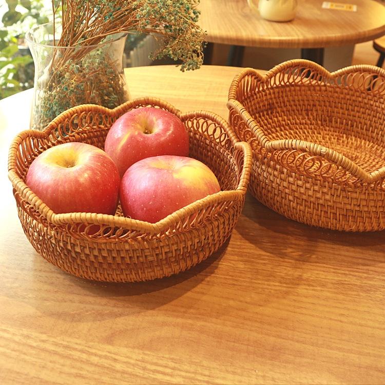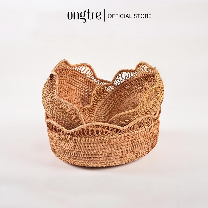 ✨Rổ mây tròn viền hoa ONGTRE đựng hoa quả, đồ khô, decor trang trí