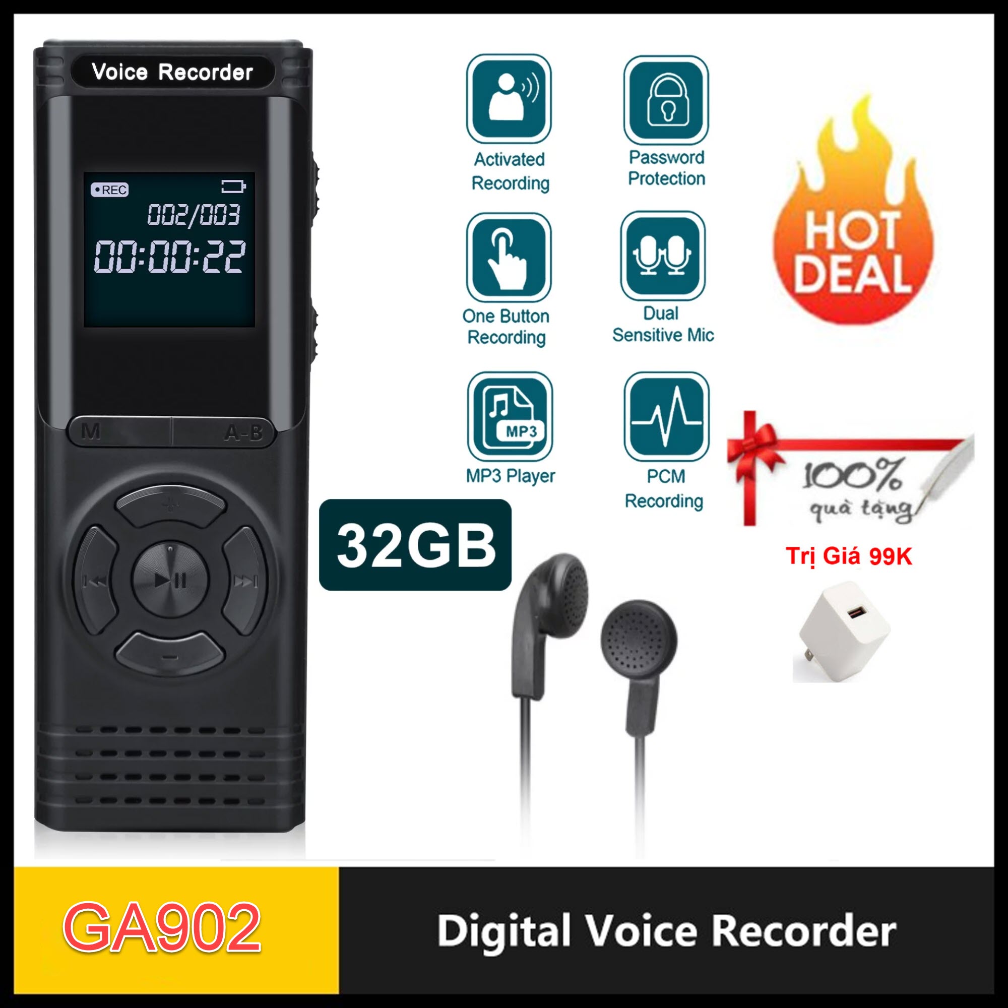 - Sạc nhanh chóng chỉ trong 2-3 giờ, sẵn sàng cho mọi cuộc ghi âm bất tận. Máy Ghi Âm GA902 - Lựa chọn hoàn hảo cho: