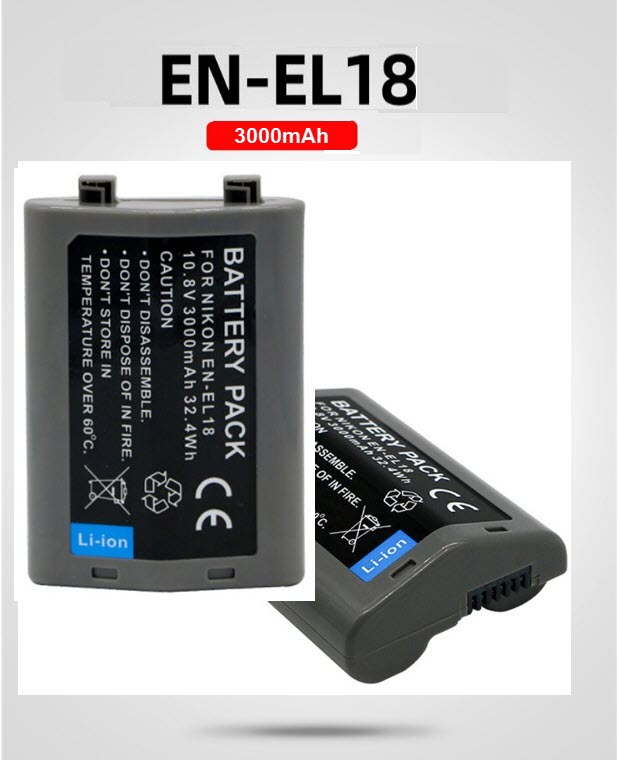 - Pin EN-EL18 3000mAh cung cấp năng lượng lâu dài cho các máy ảnh Nikon tương thích.