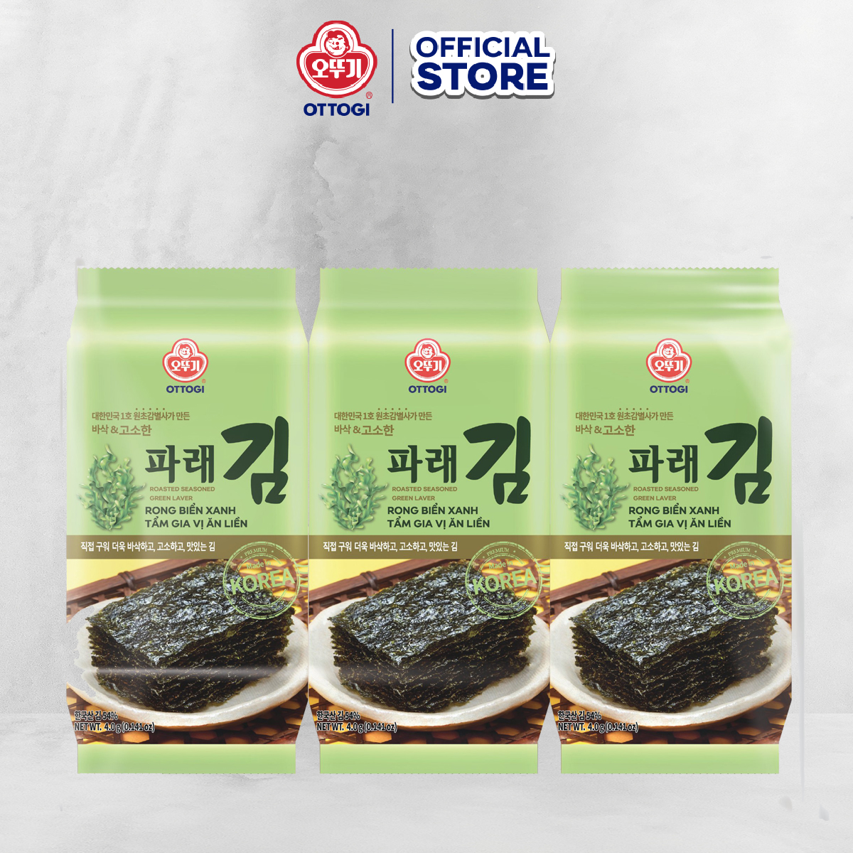 Mua tại TiktokRong biển xanh tẩm gia vị ăn liền Ottogi túi 4g x 3 gói