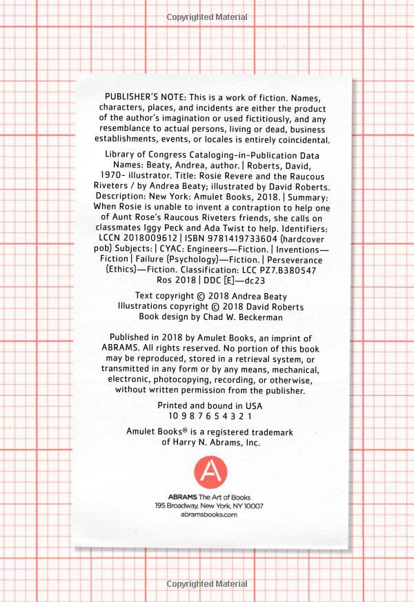 Rosie Revere is no stranger to flops and fails, kerfuffles and catastrophes. After all, engineering is all about perseverance! But this time, Rosie has a really important project to tackle—one that feels much bigger than herself.