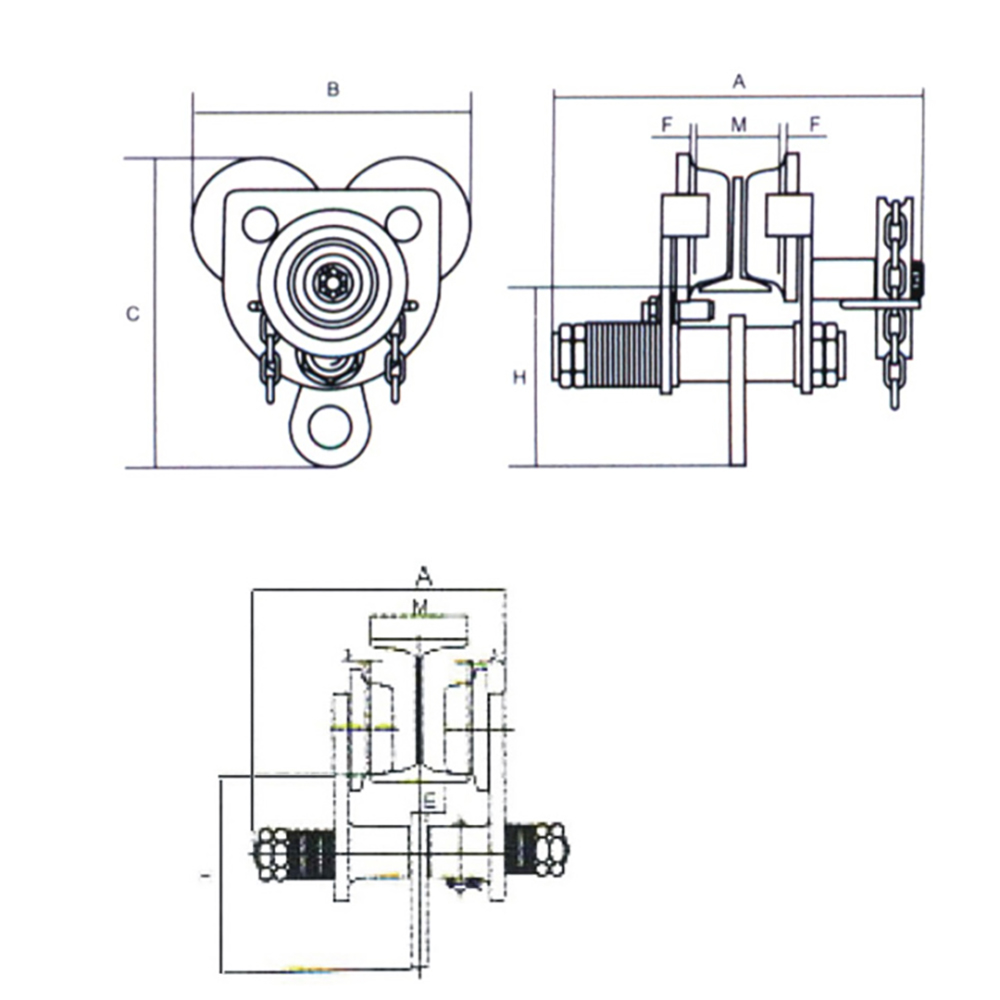 Rùa kéo tay, cụm móc treo palang 1 tấn, cụm treo pa lăng, móc treo plang có xích Thông số kĩ thuật rùa kéo tay, cụm móc treo palang 1 tấn, cụm treo pa lăng, móc treo plang có xích: Tải trọng: 1 tấn Độ dài của xích: 5m Bề rộng dầm: Nhỏ nhất: 75 mm, Lớn nhất: 125 mm Bán kính: 1300 mm Trọng lượng: 12 kg Rùa kéo tay, cụm móc treo palang 1 tấn, cụm treo pa lăng, móc treo plang có xích Các loại cụm móc treo Pa lăng Các công việc nâng hạ, vận chuyển hàng hóa vật nặng đang được chuyển dần sang việc sử dụng các thiết bị máy móc hỗ trợ mà không sử dụng hoàn toàn sức người như trước kia nữa. Việc này có ý nghĩa rất lớn nhằm tăng hiệu quả công việc, giảm sức lao động, đem lại lợi ích kinh tế và đảm bảo an toàn cho người lao động khi phải làm những công việc nặng nhọc. Các thiết bị nâng hạ điển hình, được sử dụng nhiều nhất hiện nay có thể nói đến chính là Pa lăng xích và máy tời kéo.   Khi nói đến Palang, bộ phận quan trọng nhất, chịu lực tác động nhiều nhất khi nâng vật đó là cụm móc treo Pa lăng. Do đó, để đảm bảo an toàn cho thiết bị và người sử dụng, móc treo cần được kiểm định một cách kỹ càng và chính xác. Các loại cụm móc treo Pa lăng thông dụng Thường có 2 loại phổ biến hiện nay là cụm móc treo trên một trên một nhánh dây và móc treo để làm điểm tựa cho Pa lăng.