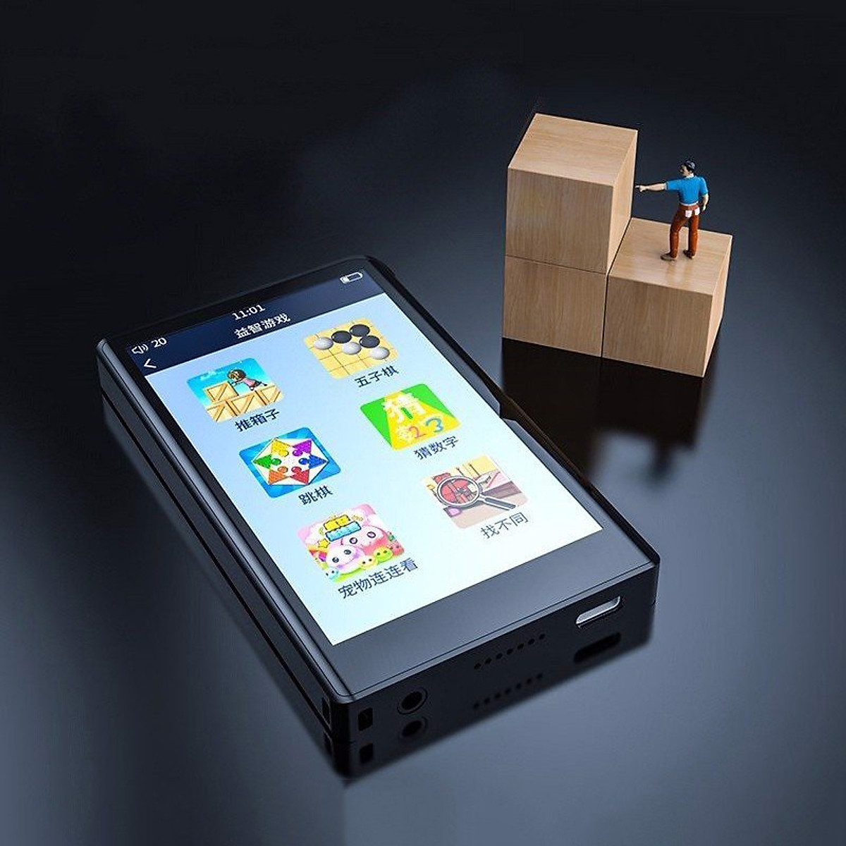 - Máy nghe nhạc Ruizu C3 thiết kế gọn nhẹ mặt lưng xuyên thấu và đèn nền xung quanh, màn hình cảm ứng 2.4 inch mặt kính trong mang lại hình ảnh sắc nét, từ điển dành