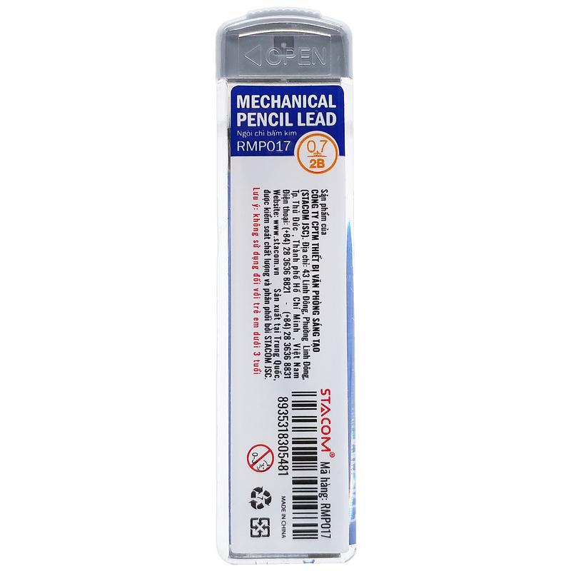 Ruột Bút Chì Kim Bấm 2B 0.7 mm - Stacom RMP017 Phù hợp với nhiều loại bút chì, độ đậm 2B đạt chuẩn, mang lại những chữ viết đậm nét, rõ ràng và mượt mà.