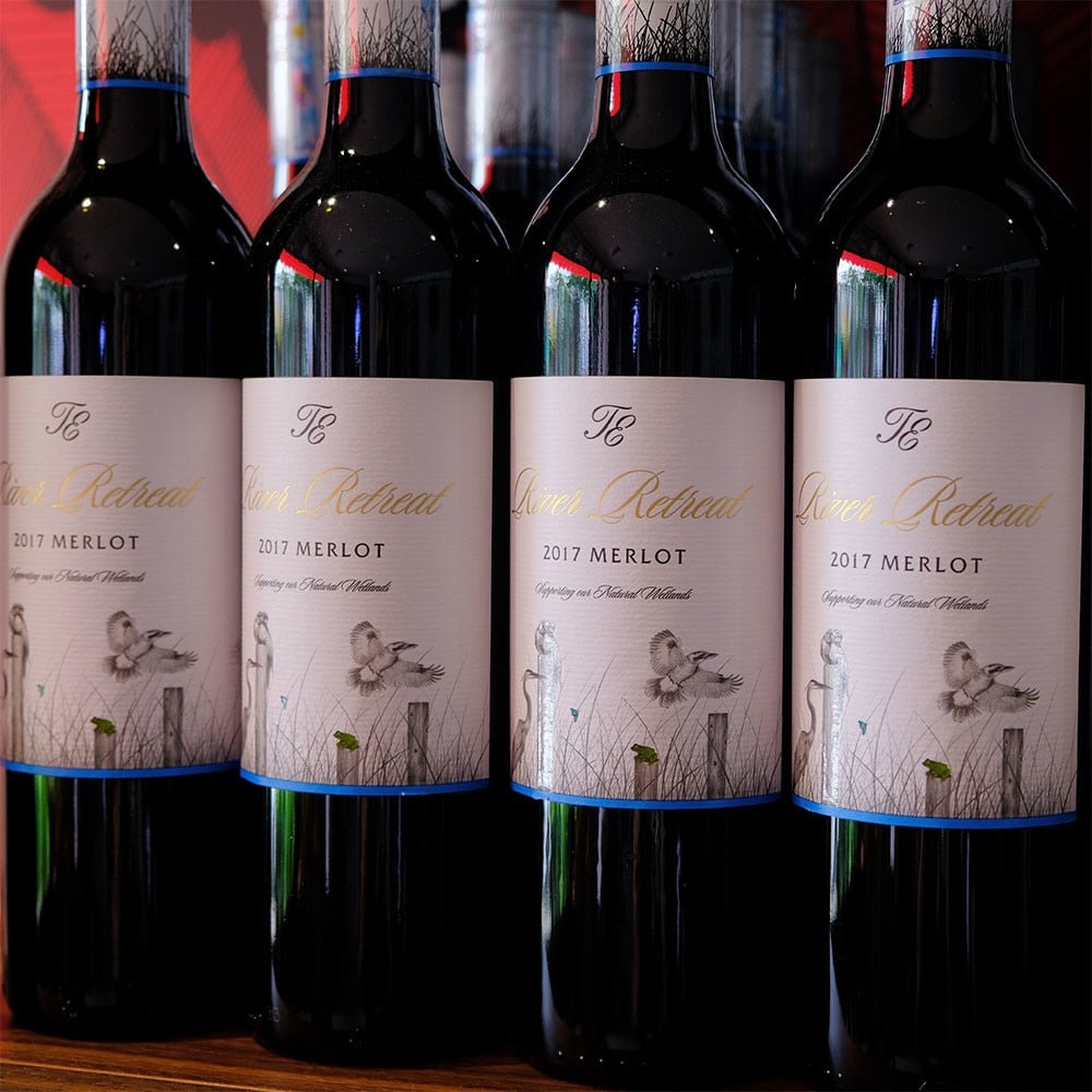 Rượu vang đỏ River Retreat được thu hoạch ở độ chín lý tưởng, nho được nghiền nát và lên men trên vỏ trong 7 ngày với máy bơm thường xuyên để chiết xuất màu sắc và hương vị. Sau khi ép, rượu được ủ bằng gỗ sồi Pháp chọn lọc trước khi pha trộn và đóng chai. Rượu vang đỏ River Retreat - Merlot có màu đỏ sẫm thể hiện hương thơm của quả anh đào sẫm và mận với một chút ô liu đen; mềm mại và êm dịu với hương vị của mận và dâu tằm. Một chút hương vị của gỗ sồi và tannin chín mềm khiến đây trở thành một loại rượu vang dễ uống với hậu vị kéo dài và êm dịu. Đây là dòng rượu vang mới nhất của rượu Trentham Estate, được tạo ra theo kiểu hiện đại, hương vị trái cây, dễ uống.