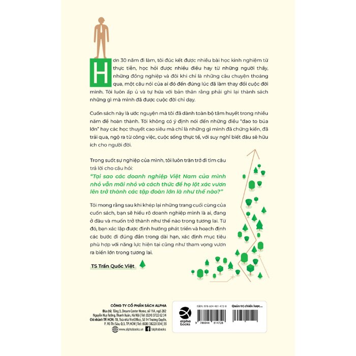 Với nhiều năm kinh nghiệm chinh chiến trên thương trường và bằng lối viết chân phương, TS Trần Quốc Việt đưa người đọc đi khám phá thế giới của quản trị chiến lược “thực chiến” qua nhiều chặng lý thuyết, công cụ và câu chuyện thực tế.