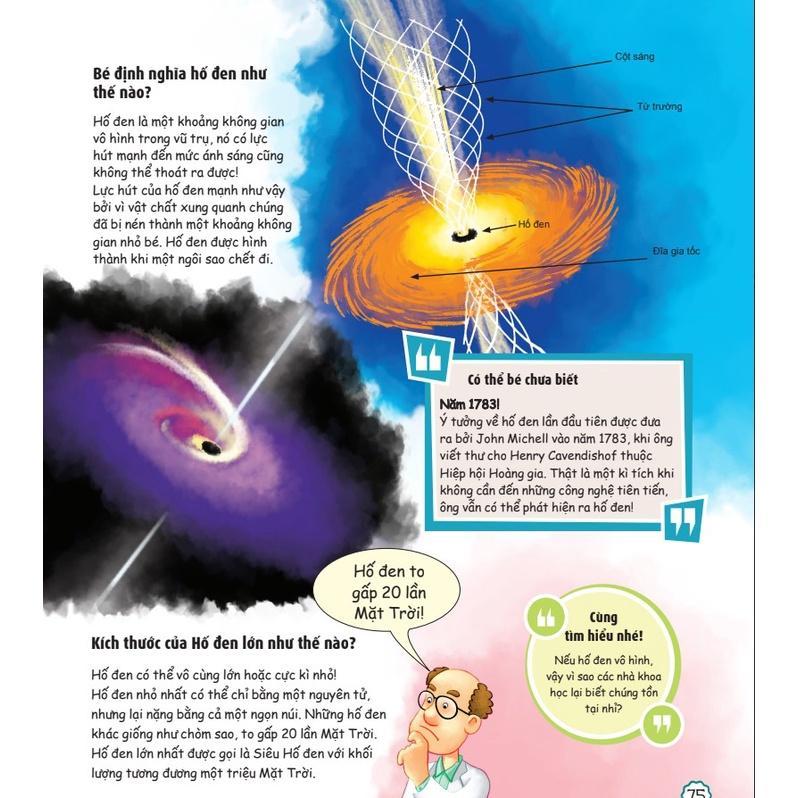 6 chương của cuốn sách sẽ mở ra những điều thú vị và trả lời những thắc mắc của con về: Cơ thể người, hệ mặt trời, công nghệ, khoa học, động vật, tự nhiên.