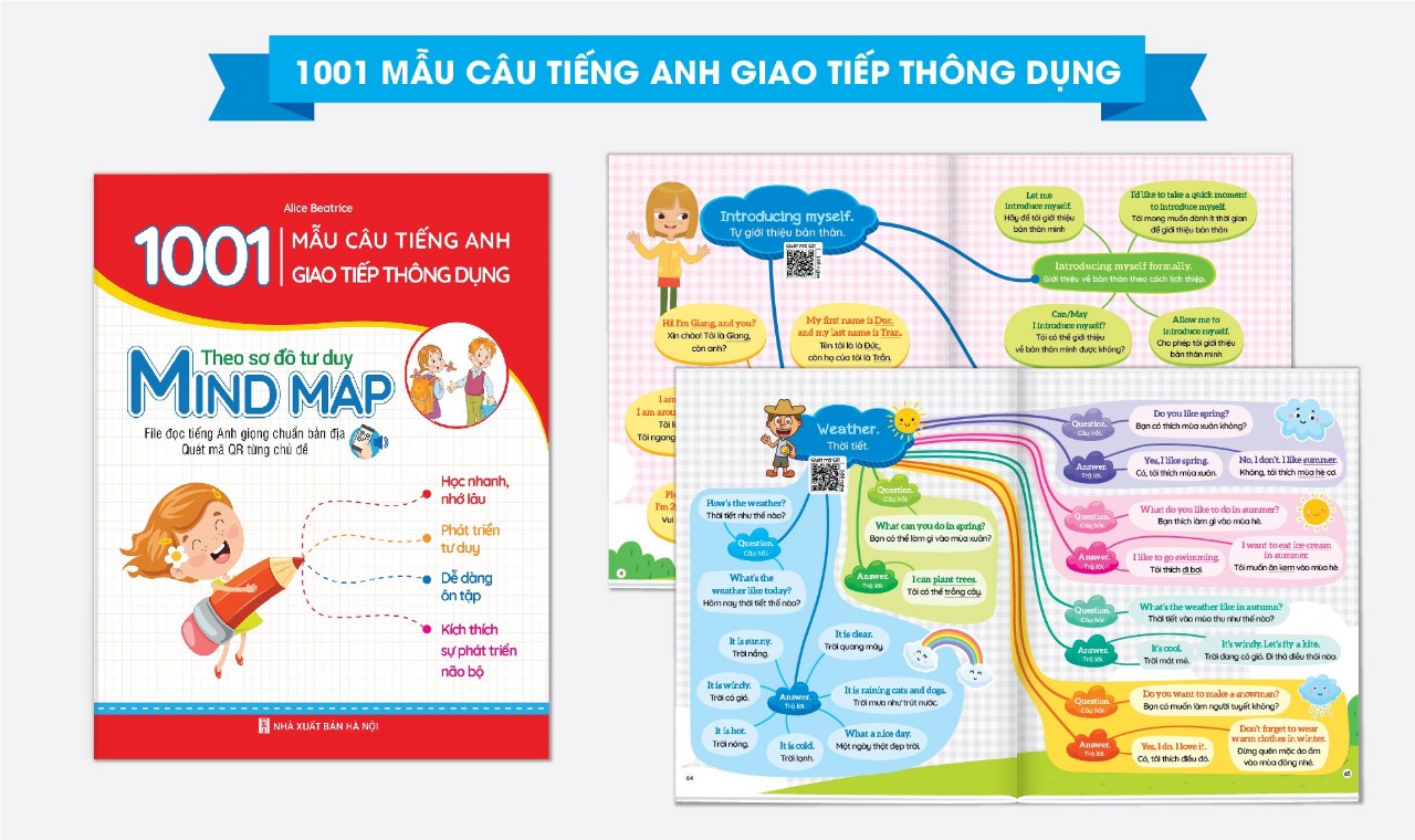- KÈM THEO FILE ĐỌC TIẾNG ANH GIỌNG CHUẨN BẢN ĐỊA – QUÉT MÃ QR Để giúp cho trẻ có thể học nhanh, nhớ lâu, dễ dàng ôn tập, tự tin giao tiếp. Chúng tôi xin giới thiệu cuốn sách 1001 MẪU CÂU GIAO TIẾP TIẾNG ANH THÔNG DỤNG – THEO SƠ ĐỒ TƯ DUY MIND MAP, với hơn 30 chủ đề thường gặp trong cuộc sống hàng ngày và các mẫu câu giao tiếp thông dụng được trình bày theo dạng Sơ đồ tư duy Mind map rất logic, đơn giản và dễ hiểu. Kết hợp cùng với cuốn Chinh phục từ vựng tiếng Anh – Theo Sơ đồ tư duy Mind map, bộ 2 cuốn sách sẽ là cẩm nang giúp trẻ nắm vững hệ thống từ vựng tiếng Anh và giao tiếp tiếng Anh một cách tự tin, hiệu quả nhất. Đặc biệt, cuốn sách có kèm theo File đọc tiếng Anh giọng chuẩn bản địa, quét mã QR trên sách theo từng chủ đề, sẽ giúp trẻ luyện kĩ năng nghe – nói tốt hơn và phát âm chuẩn hơn. HƯỚNG DẪN BẢO QUẢN SÁCH THIẾU NHI: