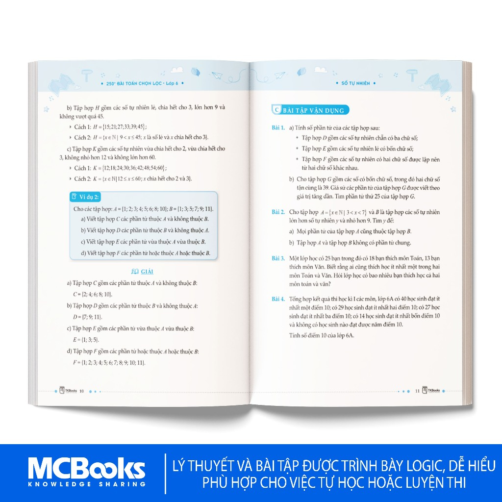 ✨Sách - 250 Bài Toán Chọn Lọc Lớp 6 – Cùng Con Chinh Phục Môn Toán