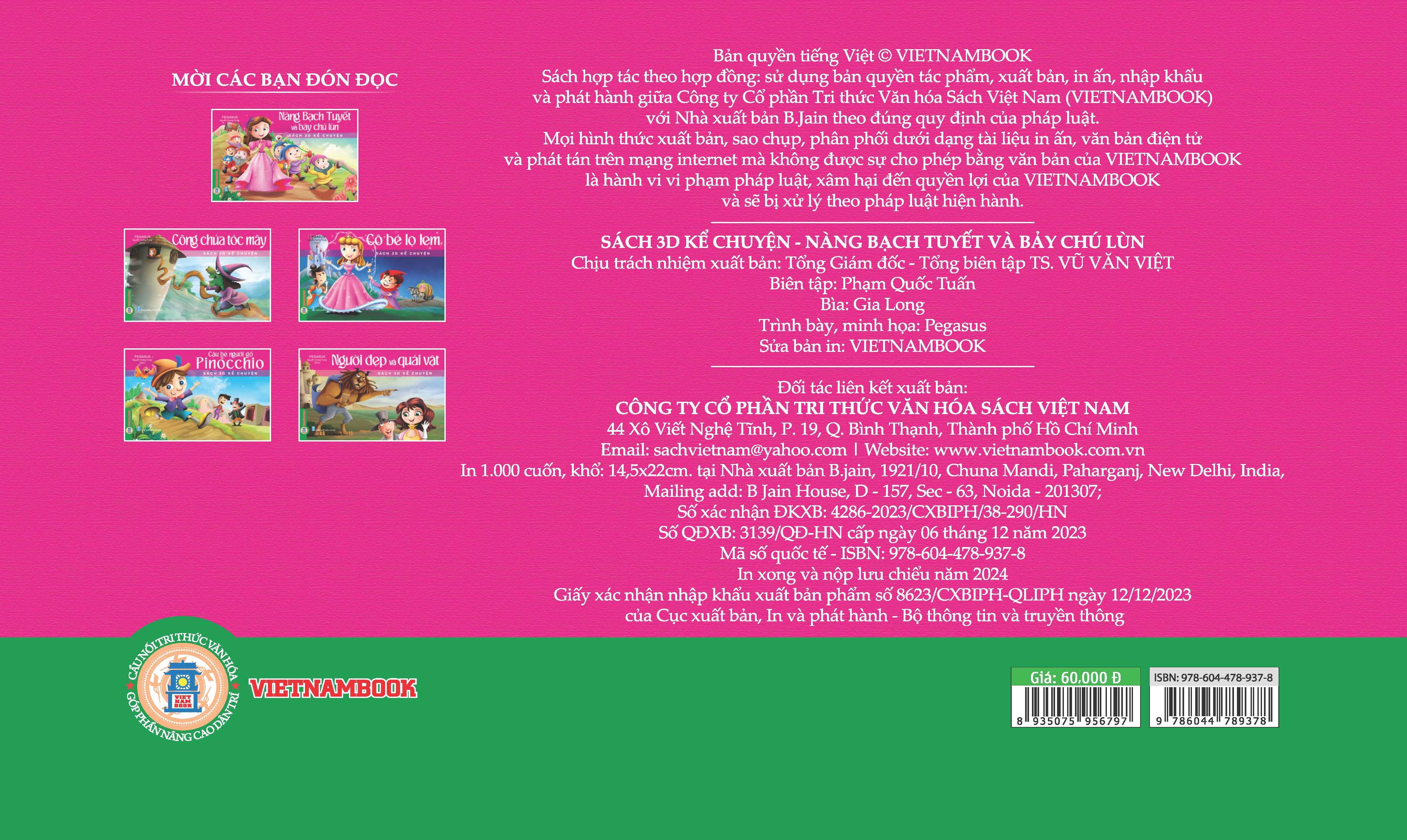 Mua tại TiktokĐược sự cứu giúp của bảy chú lùn, nàng Bạch Tuyết xinh đẹp, hiền lành, với tình yêu thương cây cỏ muôn loài và hay giúp đỡ mọi người đã làm thất bại nhiều mưu đồ của mụ hoàng hậu phù thủy độc ác.