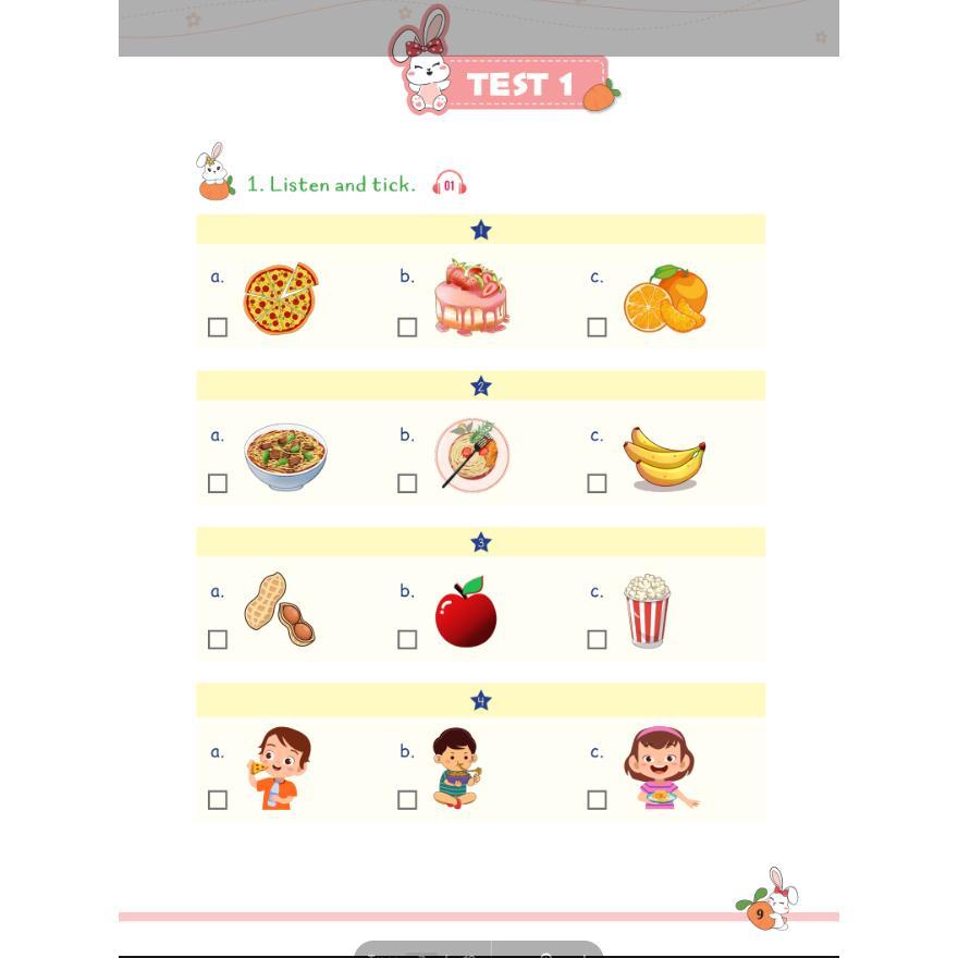 -Kỹ năng Nghe – Nói – Đọc – Viết: Mỗi đề đều bao gồm các phần luyện tập kỹ năng nghe, nói, đọc, viết, giúp các em phát triển toàn diện các kỹ năng tiếng Anh.