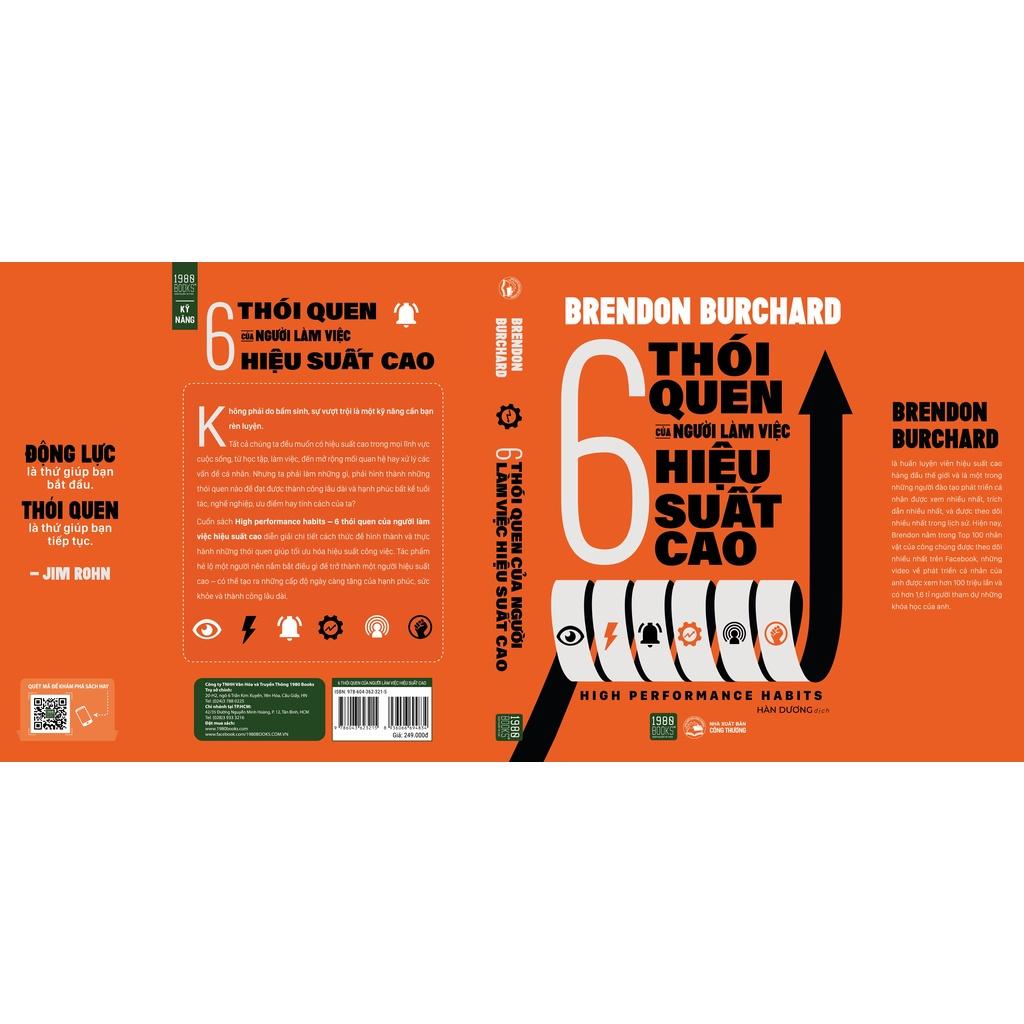 Cuốn sách “High performance habits – 6 thói quen của người làm việc hiệu suất cao” diễn giải chi tiết cách thức để thực hành những thói quen này. Cuốn sách đã tổng hợp những nghiên cứu trong 20 năm của tác giả Brendon Burchard từ hoạt động huấn luyện của mình. Đây là các tổng kết đắt giá nhất có được nhờ các cuộc khảo sát, phỏng vấn tiêu chuẩn và các công cụ đánh giá chuyên nghiệp về những người có hiệu suất cao trên toàn thế giới. Tác phẩm hé lộ một người nên nắm bắt điều gì để trở thành một người hiệu suất cao – có thể tạo ra những cấp độ ngày càng tăng của hạnh phúc, sức khỏe và thành công lâu dài.