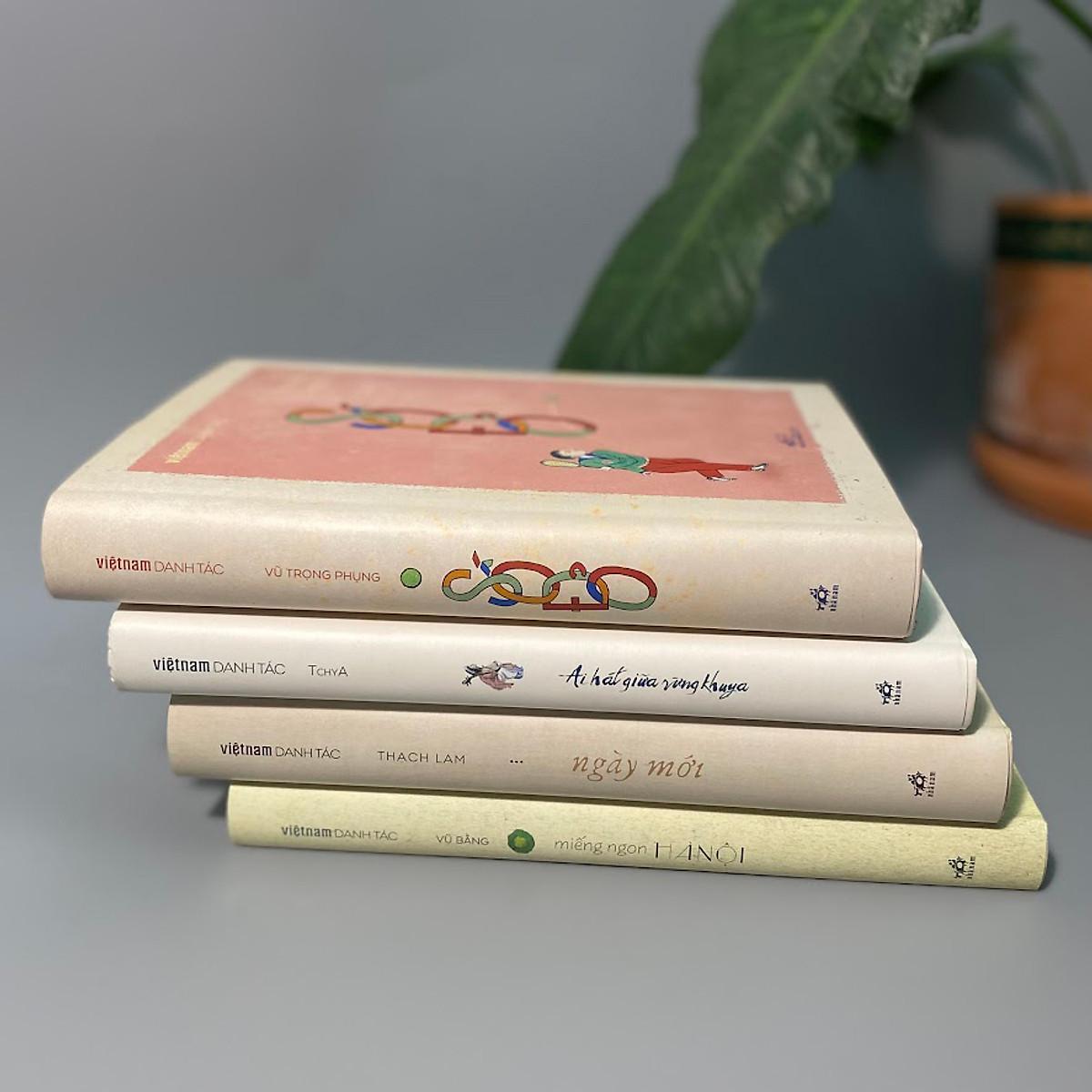 - Sách bìa cứng, có bìa áo (jacket). Bìa áo in giấy couché matt cán mờ định lượng 150gsm, tên sách, tên tác giả và bộ Việt Nam danh tác được phủ bóng.