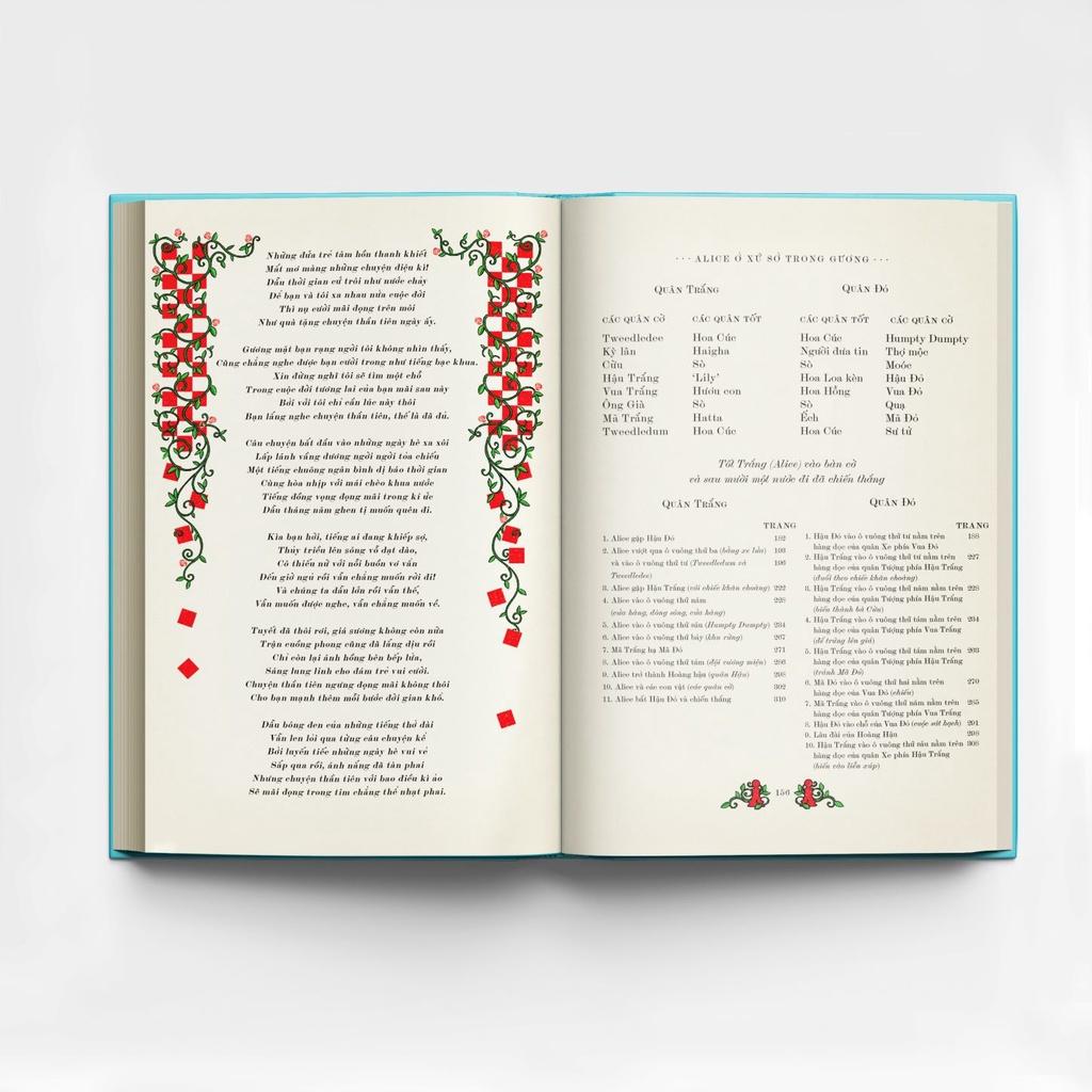 Với lần tái bản này, Alice ở xứ sở diệu kì & Alice ở xứ sở trong gương của Lewis Carrol đã trở lại với một diện mạo hoàn toàn mới. Những hình minh họa hoàn toàn mới cùng các trò chơi tương tác độc quyền từ studio thiết kế MinaLima sẽ mang đến một chuyến đi trở về tuổi thơ cho độc giả ở mọi lứa tuổi.