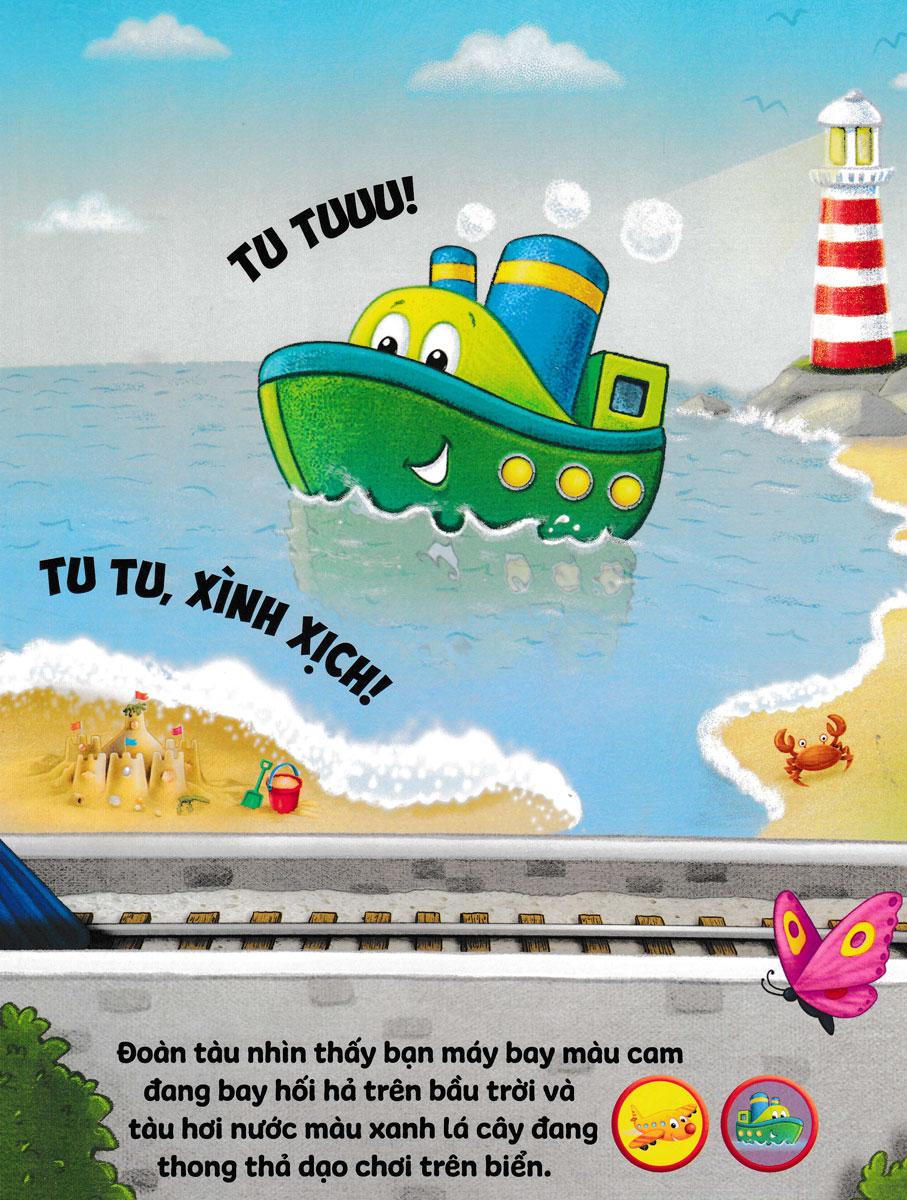 Anh tàu hỏa màu xanh dương đang chạy bon bon và thực hiện chuyến phiêu lưu đầy thú vị. Bé hãy tham gia vào chuyến hành trình khám phá cùng với tàu hỏa màu xanh dương và ghé thăm những người bạn phương tiện của anh ấy nhé! Với 8 âm thanh chân thực và sinh động, bé chắc chắn sẽ yêu thích cuốn sách kể chuyện hấp dẫn này!