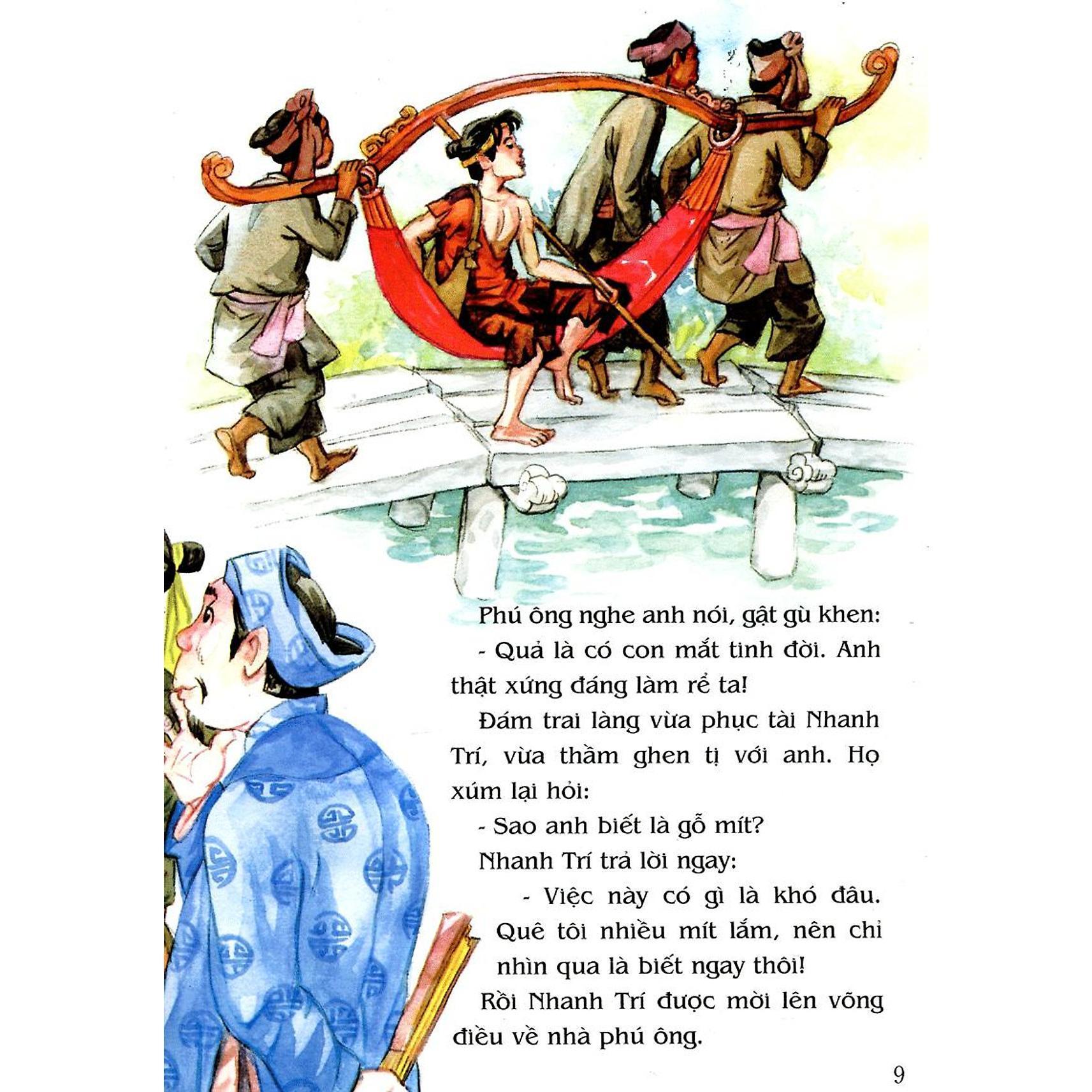 Tranh Truyện Dân Gian Việt Nam: Anh Chàng Nhanh Trí “Trời ơi, mắt mũi để đâu mà lại lặn xuống ao thế hả con?” Tiếc quá, con vừa vồ trượt một con cá to mẹ ạ!” Thực tình thì anh con rể ấy bị thông manh, anh không nhìn thấy đường nên bị ngã xuống ao! Nhưng nhờ vào sự nhanh trí và tài ứng đối mà hết lần này qua lần khác anh đã “qua mặt” được bố mẹ vợ và dân làng. Cũng chính cái tài này trước đó đã giúp anh lấy được con gái phú ông làm vợ… Liệu cuối cùng bí mật của anh có bị phát hiện không? Mời các em cùng đọc truyện! Những câu chuyện dân gian giúp các em giàu thêm mơ ước, biết sống đẹp và trân trọng truyền thống cha ông. Cùng tìm đọc hơn 100 cuốn Tranh truyện dân gian Việt Nam do NXB Kim Đồng ấn hành!