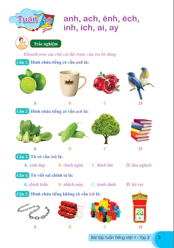 Cuốn vở bài tập tuần có cấu trúc là các bài tập theo tuần dựa vào yêu cầu về kiến thức và kĩ năng cần đạt ở mỗi chủ đề và bài học trong sách giáo khoa. Các em sẽ được rèn luyện các kĩ năng: Đọc hiểu, hoàn thiện từ và câu, nghe viết và thực hành nói. Các kỹ năng này hướng tới các em thành thạo 4 kỹ năng : nghe, nói, đọc, viết để học tốt hơn môn Tiếng Việt ở tiểu học