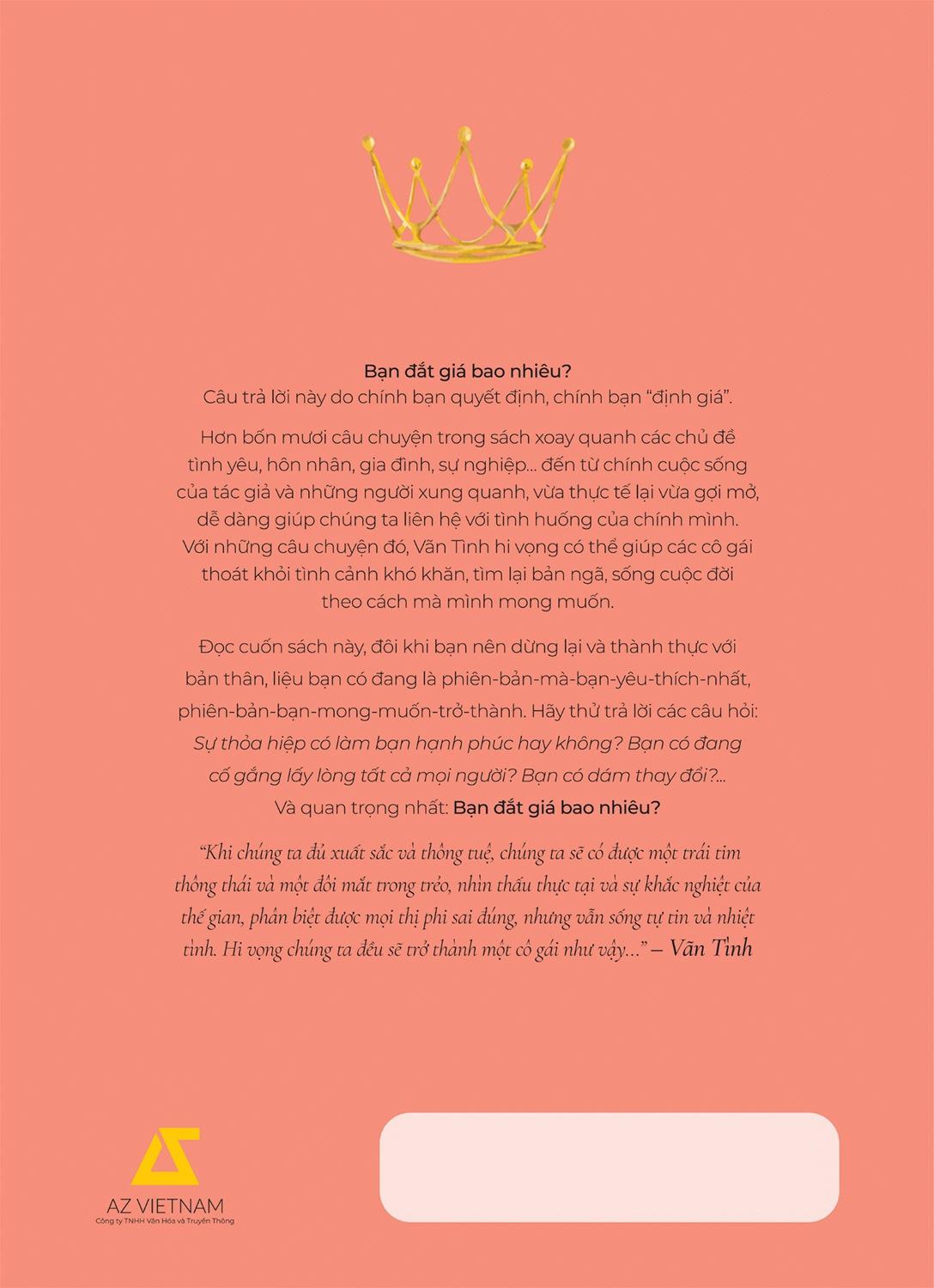 Bạn Đắt Giá Bao Nhiêu? Câu trả lời này do chính bạn quyết định, chính bạn “định giá”. Hơn bốn mươi câu chuyện trong sách xoay quanh các chủ đề tình yêu, hôn nhân, gia