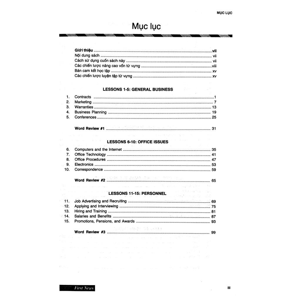 Công ty phát hành: First News - Trí Việt Tác giả: Barron's Ngày xuất bản: 2020 Kích thước: 19 x 26 cm Nhà xuất bản: NXB Tổng hợp Số trang: 392 Mô tả sản phẩm: Các Từ Vựng Cần Thiết Để Thi TOEIC “Essential Words for the TOEIC - 6th Edition” là cuốn sách được cập nhật mới nhất nhằm cung cấp những từ vựng cần thiết để luyện thi TOEIC – kỳ thi Trắc Nghiệm Tiếng Anh Trong Giao Tiếp Quốc Tế (Test of English for International Communication). Kỳ thi này đánh giá trình độ tiếng Anh của những người làm việc trong lĩnh vực kinh doanh quốc tế, hoặc những người học tiếng Anh với mục đích giao tiếp. Đây là ấn bản mới nhất (xuất bản lần thứ 4 tại Việt Nam) được cập nhật từ những bài thi gần đây nhất của viện giáo dục khảo thí Hoa Kỳ (Educational Testing Service), bao gồm 50 bài học về cách xây dựng vốn từ vựng trong tiếng Anh. Phiên bản mới 6th tập trung chủ yếu vào Tiếng Anh – Mỹ được sử dụng nhiều nhất trong kinh doanh, công nghiệp, giao tiếp và các lĩnh vực văn hóa khác. Cuốn sách giúp bạn nắm vững những nền tảng cơ bản để hiểu những ngữ cảnh đặc biệt thường gặp trong một bài thi TOEIC. Mỗi chương giới thiệu một ngữ cảnh chuyên môn cụ thể và những từ mới kèm theo. Những từ này không phải là từ chuyên môn, mà là những từ vựng thông dụng có thể dùng được trong rất nhiều ngữ cảnh khác nhau. Tuy nhiên, vì được sử dụng trong một ngữ cảnh chuyên môn, nên ngữ nghĩa của chúng sẽ thay đổi so với khi sử dụng trong những tình huống phổ thông. Hiểu được điều này sẽ giúp bạn cải thiện đáng kể kết quả thi TOEIC. Các bài tập đều liên quan đến các câu hỏi thực tiễn hàng ngày giúp rèn luyện kỹ năng Tiếng Anh. Song hành với đó, là hướng dẫn cụ thể về cách sử dụng Tiếng Anh thực tiễn theo từng ngành nghề: Soạn thảo hợp đồng, tiếp thị quảng cáo, tài chính ngân hàng và các ngành nghề khác. Những bài tập thêm vào giúp người dự thi chứng chỉ TOEIC mở rộng được vốn từ vựng của mình theo từng lĩnh vực, ngành nghề có liên quan đến các hoạt văn hóa như: Phim ảnh, âm nhạc, và nghệ thuật.