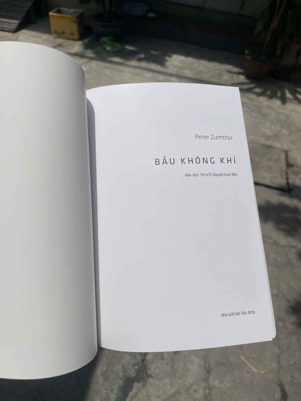 Cuốn sách "Bầu không khí" (Atmospheres) của Peter Zumthor là một tác phẩm ngắn gọn nhưng sâu sắc, trong đó kiến trúc sư nổi tiếng người Thụy Sĩ chia sẻ những suy ngẫm cá nhân
