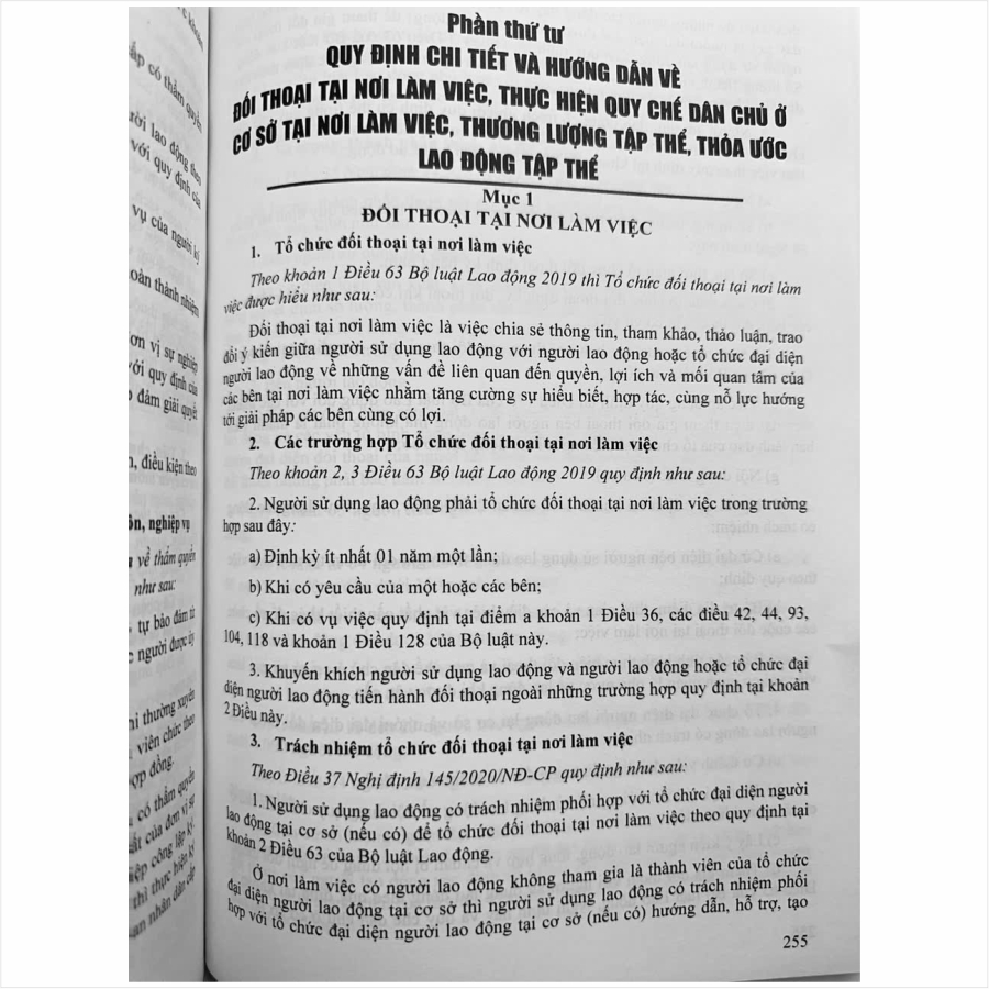 Phần thứ tư. Quy định chi tiết và hướng dẫn về đối thoại tại nơi làm việc, thực hiện quy chế dân chủ ở cơ sở tại nơi làm việc, thương lượng tập thể, thỏa ước lao động tập thể