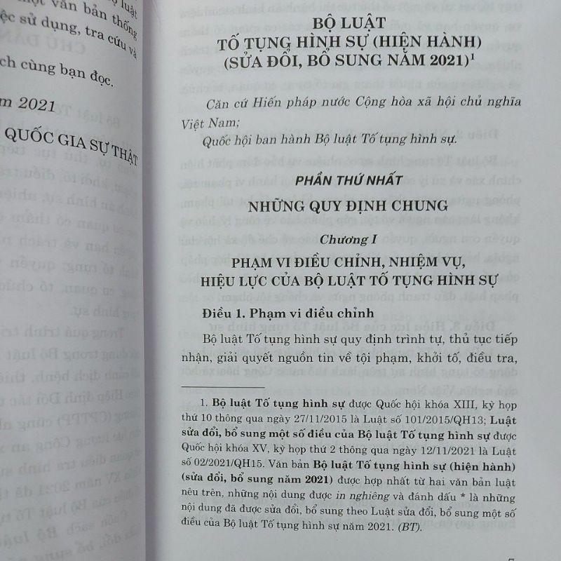 Phiên bản Bộ luật tố tụng hình sự năm 2015 (đính kèm 4 trang nội dung chỉnh sửa năm 2021), nên bạn đọc cân nhắc khi mua tham khảo Bộ luật tố tụng