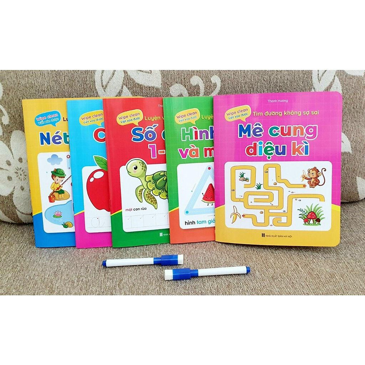 Sách - Bộ Vở Viết Xóa Được - Wipe Clean Luyện Viết Không Sợ Sai ( Bộ 5 Cuốn) - Tặng Kèm 2 Bút