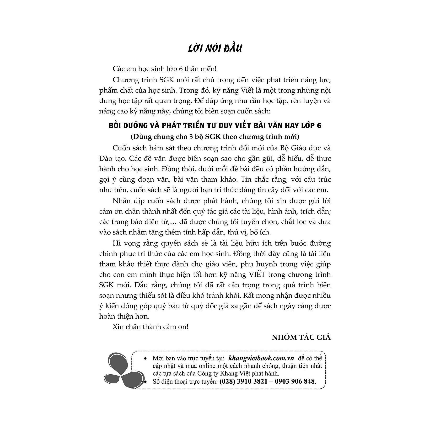 BỒI DƯỠNG VÀ PHÁT TRIỂN TƯ DUY VIẾT BÀI VĂN HAY LỚP 6 (Dùng chung cho 3 bộ SGK theo chương trình mới)