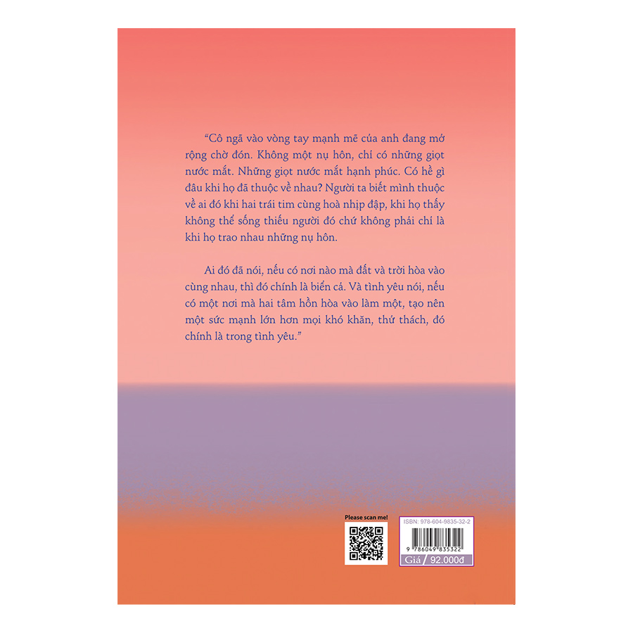 Cô ngã vào vòng tay mạnh mẽ của anh đang mở rộng chờ đón. Không một nụ hôn, chỉ có những giọt nước mắt. Những giọt nước mắt hạnh phúc. Có hề gì đâu, khi họ đã thuộc về nhau? Người ta biết mình thuộc về ai đó khi hai trái tim cùng hoà nhịp đập, khi họ thấy không thể sống thiếu người đó chứ không phải chỉ là khi họ trao nhau những nụ hôn.