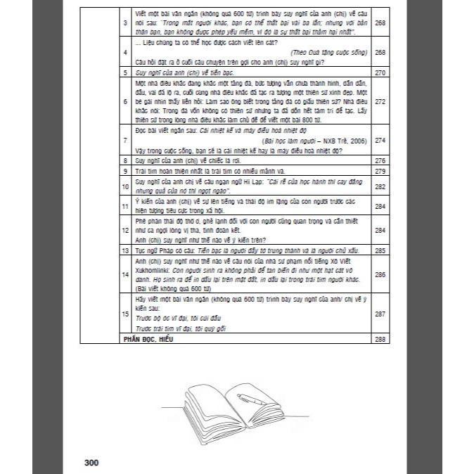 Cũng cần nói với các em rằng, học là học cách để học chứ không phải học cách để thuộc vẹt. Vì vậy, các em cần nắm vững phương pháp để làm chủ tất cả các dạng đề thi. Bởi, có kiến thức mà không có phương pháp thì giống như con thuyền không có hải đăng dẫn lối vậy. Cũng trong cuốn sách này, chúng tôi có trích chọn một số bài văn hay của các bạn đồng trang, đồng lứa với các em, để nhìn văn bạn, các em học hỏi và tìm ra cho mình một lối đi, chứ không nên “chìm khuất” vào văn của bạn. Bởi văn chương không có mẫu. Thuộc làu văn mẫu là biểu hiện của một học sinh thụ động trước việc học và sẽ thụ động trong công việc sau này, thật là tai hại! Chúc các em có kì thi thành công để trở thành trí thức đúng nghĩa và công dân tốt góp phần làm phồn vinh đất nước. Rất mong quý vị bỏ qua những thiếu sót nếu có. Trân trọng biết ơn quý tác giả của những bài viết mà chúng tôi mạo muội trích chọn vào sách này! \