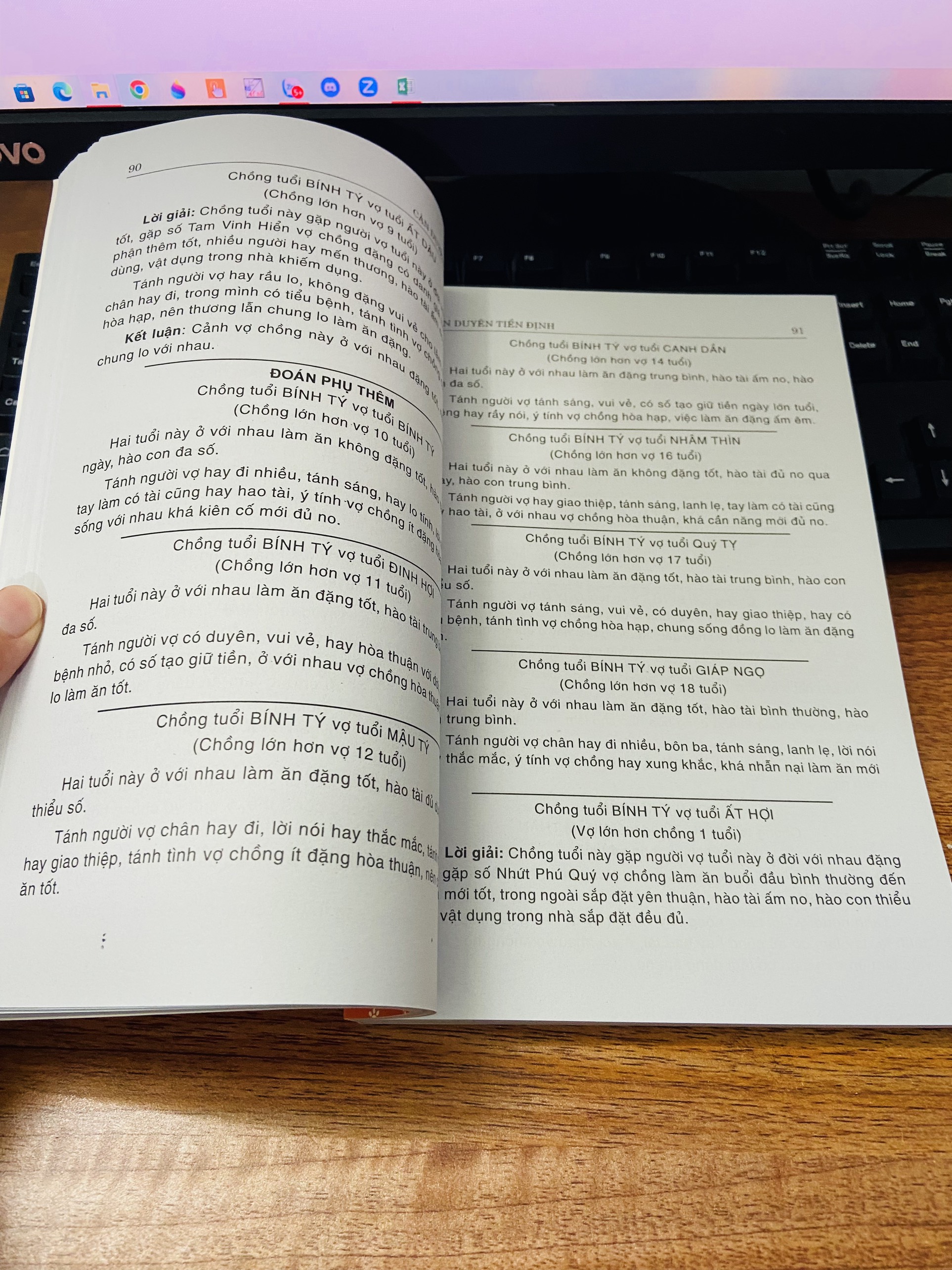 Cuốn sách là cuốn tử vi tình duyên kinh điển xuất bản năm 1952. Nội dung chuyên sâu về xem tuổi vợ chồng hợp, khắc dựa theo tuổi, năm sinh, bản mệnh.