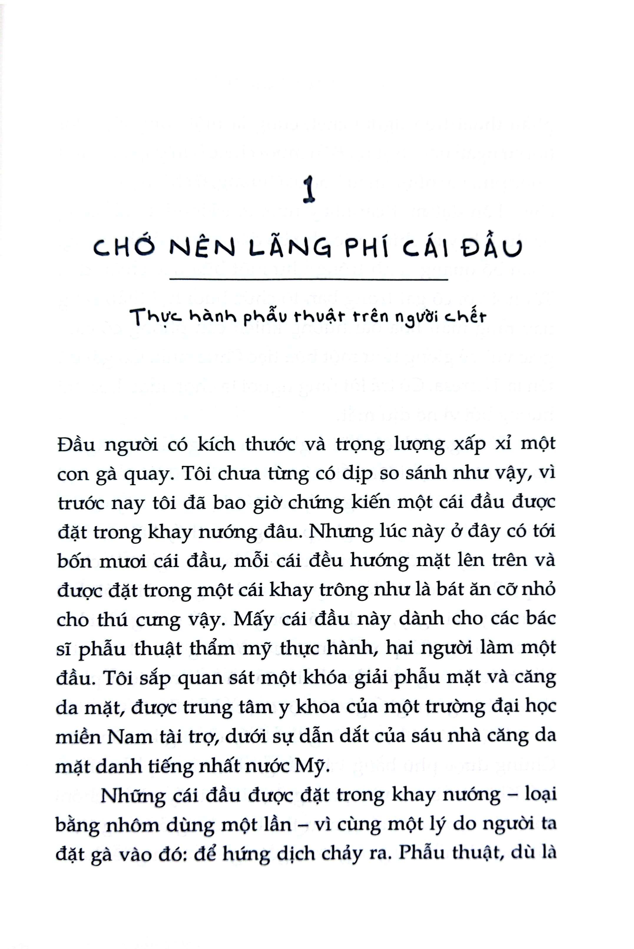 Bằng giọng văn dí dỏm đặc trưng mà không hề thiếu vắng thái độ tôn trọng, Mary Roach đã khai thác một đề tài vốn còn nhiều định kiến và kiêng kỵ, từ đó mở ra không chỉ những bí ẩn hậu trường mà còn xem xét những vấn đề đạo đức xoay quanh công việc nghiên cứu xác chết. Hơn thế nữa, cuốn sách còn là bản tụng ca về những con người đã cống hiến cho khoa học, những siêu anh hùng thầm lặng của chúng ta.