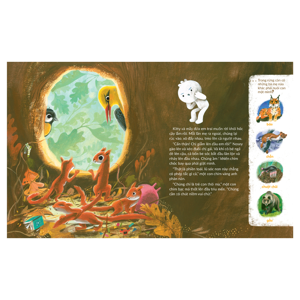 Câu chuyện về gia đình sóc không chỉ đơn thuần là một chuyến phiêu lưu thú vị mà còn là hành trình học hỏi bổ ích về loài động vật đáng yêu này. Cuốn sách sẽ giải đáp những thắc mắc của các bạn nhỏ như: Sóc ăn gì? Sóc sống ở đâu? Đối với sóc, loài vật nào là mối đe dọa?