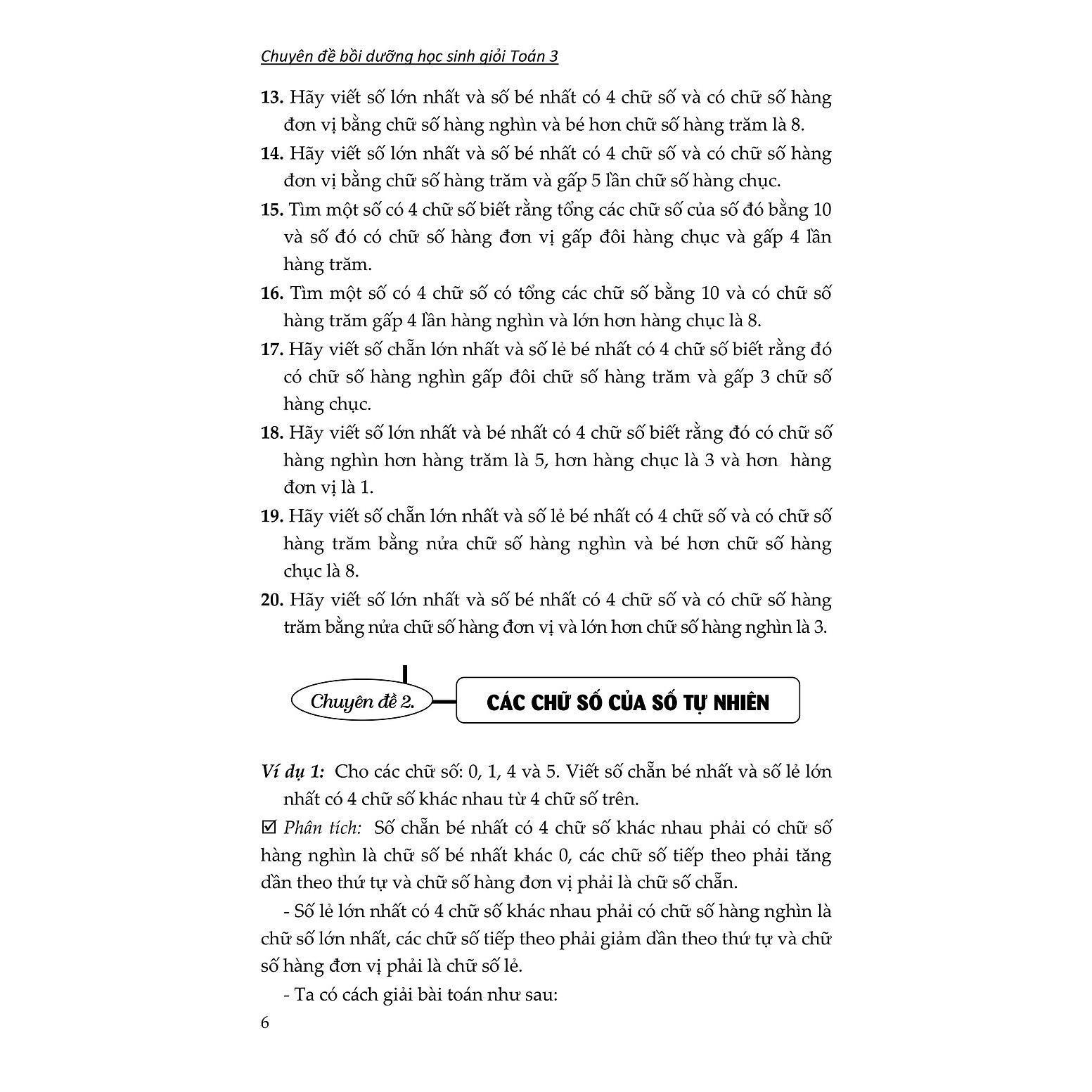 Cuốn Chuyên Đề Bồi Dưỡng Học Sinh Giỏi Toán 3 nhằm giúp học sinh lớp 3 phát triển và nâng cao kiến thức môn toán.Cuốn sách là Cuốn “Chuyên đề bồi dưỡng học sinh giỏi Toán 3” một tài liệu tham khảo cho giáo viên cũng như các bậc phụ huynh trong quá trình hướng dẫn học sinh làm thêm các bài tập trong mỗi tuần. Cuốn sách được biên soạn theo nội dung chương trình sách giáo khoa Toán 3 - CTGDPH 2018 có thể dùng chung cho tất cả các bộ sách hiện hành. Với các chủ đề khác nhau , mỗi năm gồm nhiều chuyên đề, mỗi tuần một chuyên đề giúp học sinh ôn luyện, củng cố và khắc sâu kiến thức cơ bản.