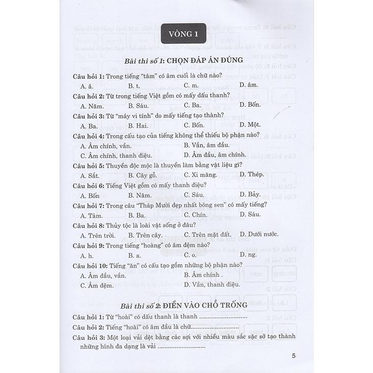 Cuốn sách gồm 35 vòng luyện thi được tác giả biên soạn và kết hợp với việc tổng hợp các vòng thi trên mạng Internet theo nội dung chương trình học môn Tiếng Việt của học sinh lớp 4. Mỗi bài thi trong các vòng thi được tác giả biên soạn phù hợp với nội dung học, không quá sức mà vẫn phải đào sâu suy nghĩ trong khi làm bài. Đặc biệt, tác giả đã trình bày nội dung câu hỏi theo hình thức tương tự các vòng thi trên mạng để giúp các em học sinh dễ dàng vận dụng trong khi tiến hành thi trên mạng.