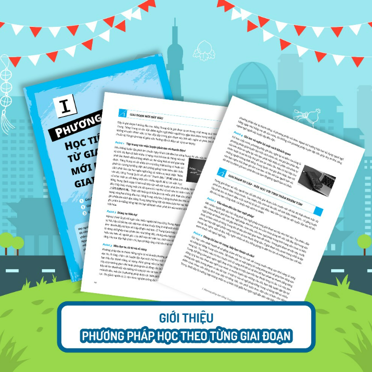 Cùng với 12 chủ đề đa dạng theo từng giai đoạn: Học từ vựng - Luyện tập cấu trúc câu - Luyện tập đoạn văn - Luyện tập thực tế.
