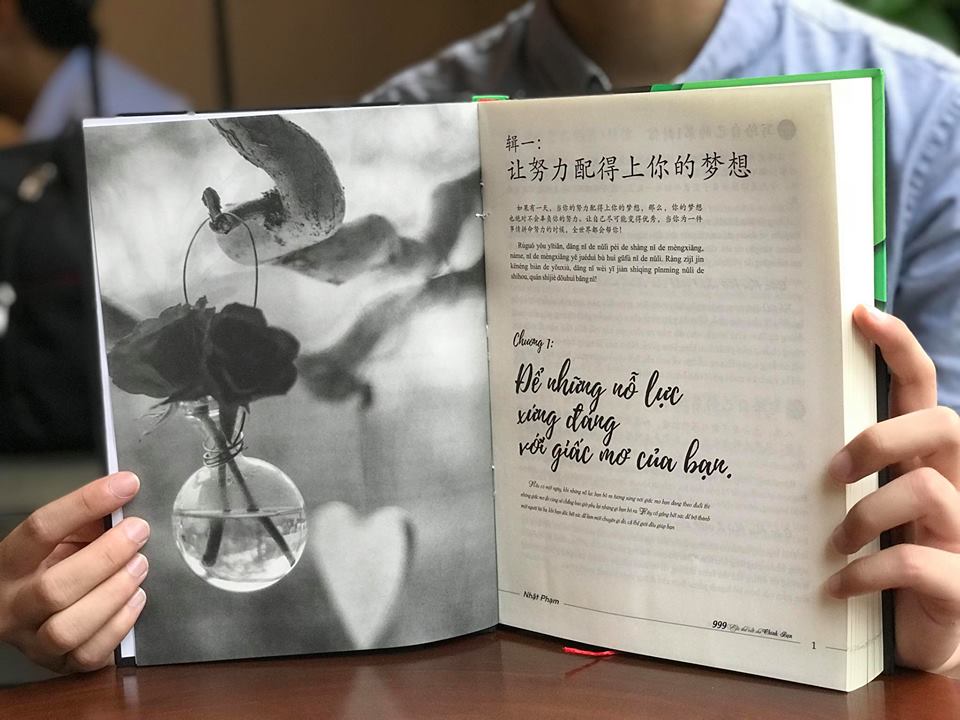 - Giới thiệu sách: 999 Bức Thư Viết Cho Chính mình (Song Ngữ Trung Việt Có Phiên Âm) - (Bản dịch chuẩn và đầy đủ) Tác giả: Nhật Phạm Số trang: 509 Năm phát hành: 2021 Công ty phát hành: Tuệ Lâm Linh Nhà xuất bản Hồng Đức Với nền văn hóa lâu đời đặc sắc và vô cùng phong phú của Trung Quốc, ngôn ngữ Trung trở thành một ngôn ngữ được nhiều bạn trẻ trên thế giới yêu thích, trong đó có Việt Nam. Những cuốn sách song ngữ có phiên âm mang màu sắc hạt giống tâm hồn vừa giúp người học tiếng Trung nâng cao thêm vốn từ vựng, cách diễn đạt, vừa giúp họ làm mát tinh thần, chiêm nghiệm được nhiều triết lí sống chưa được ấn hành nhiều ở Việt Nam. Với mong muốn giúp những bạn trẻ yêu thích tiếng Trung nhưng trình độ chưa cao có thể tiếp cận được với những triết lí của cuộc sống cũng như phát triển được ngôn ngữ, chúng tôi xin được giới thiệu cuốn sách 999 bức thư viết cho chính bạn với phiên bản đầy đủ chữ Hán, phiên âm, tiếng Việt. Hi vọng rằng cuốn sách mà chúng tôi ví như một chai nước dành cho những kẻ bộ hành giữa sa mạc sẽ giúp ích được cho nhiều người trẻ có thêm nhiều năng lượng, động lực, sự tự tin để bước về phía trước. Các bạn đọc đi, tin tôi đi, các bạn có thể không cần một đôi giày xịn, một chiếc áo đẹp, nhưng cuốn sách này thì nên có, sẽ là báu vậtgối đầu giường của các bạn học tiếng Trung. Bức thư số 1 viết gửi bản thân: Bắt đầu từ ngày hôm nay, mỗi ngày đều phải mỉm cười, trên đời này, ngoài cái chết, tất cả chỉ đều là chuyện nhỏ. Cho dù có gặp phải chuyện buồn gì, cũng đừng tự làm khó bản thân; mặc cho ngày hôm nay có bao điều tồi tệ xảy ra, cũng đừng cảm thấy đau buồn. Ngày hôm nay là ngày bạn trẻ tuổi nhất trong tất cả những chuỗi ngày sau này, bởi vì còn có ngày mai, cho nên hôm nay mãi mãi vẫn chỉ là điểm xuất phát. 写给自己的第1封信 从今天开始,每天微笑吧,世上除了生死,都是小事。不管遇到了什么烦心事,都不要自己为难自己;无论今天发生多么糟糕的事,都不应该感到悲伤。今天是你往后日子里最年轻的一天了,因为有明天,今天永远只是起跑线。