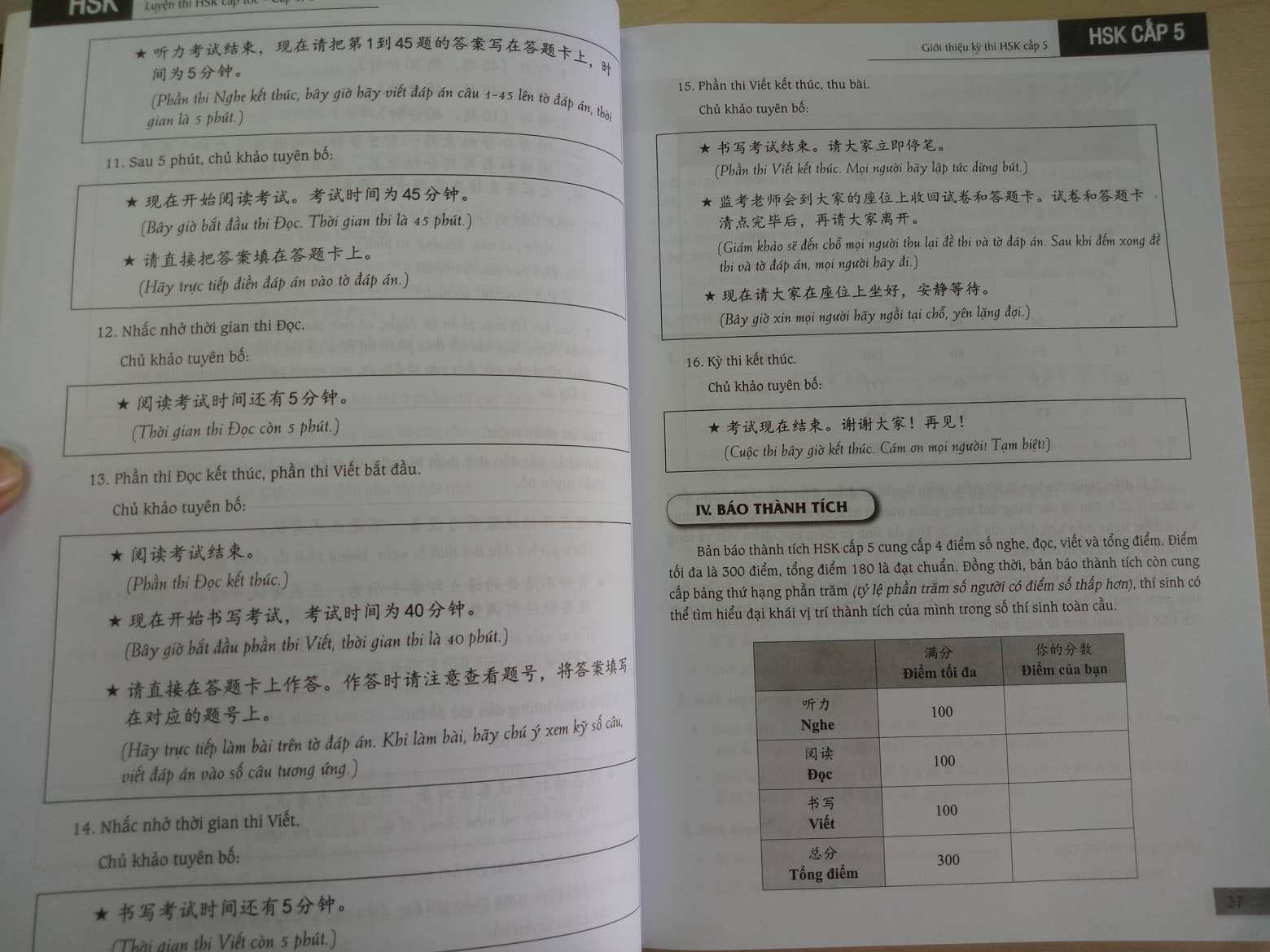 2. Luyện thi HSK cấp tốc tập 3 - Cấp 5-6 (kèm CD) Tác giả: Trương Văn GIới & Lê Khắc Kiều Lục Nhà xuất bản Đại Học Quốc Gia TPHCM Số trang: 568 Kích thước: 18.5cm x 26.5cm x 2.7cm Cân nặng: 900g Đầu tiên xin được thuyết minh về chữ “cấp tốc” mà chúng tôi dùng trong tên của bộ sách. “Cấp tốc” không phải theo ý nghĩa đơn giản là nhanh và dễ dàng, không cần phải học nhiều mà cũng có thể thi đậu. Ý nghĩa của từ “Cấp tốc” mà chúng tôi hướng đến khi biên soạn bộ sách này là giúp người học nắm vững toàn bộ kiến thức của kỳ thi của một cách nhanh nhất mà vẫn bảo đảm kết quả tốt nhất. Người học vẫn phải làm việc cật lực để chuẩn bị tốt cho kỳ thi mới hy vọng có được kết quả khả quan. Kỳ thi HSK do Văn phòng Hán ngữ nhà nước Trung Quốc (gọi tắt là HANBAN) tổ chức. HANBAN đã xây dựng chuẩn kiến thức (từ vựng, điểm ngôn ngữ, chủ đề đàm thoại …) cho từng cấp độ, từ đó đưa ra đề thi mẫu tương ứng cho cấp độ thi đó. Như vậy, Đề cương và Đề thi mẫu của HANBAN chính là tài liệu chuẩn để thí sinh ôn luyện, giáo viên và các trường giảng dạy cho kỳ thi HSK. Nó cũng là đề cương để các tác giả, nhà xuất bản và các đơn vị biên soạn và xuất bản các tài liệu cho kỳ thi này. Để đạt mục tiêu “cấp tốc” đã giải thích ở trên, chúng tôi dựa vào Đề cương và Đề thi mẫu của HANBAN, cũng như những tài liệu luyện thi HSK của Trung Quốc để biên soạn bộ sách này. Từng phần của bài thi được giới thiệu qua một cấu trúc thống nhất như sau: I. Đặc điểm dạng đề: Phần này giới thiệu cấu trúc, đặc điểm và cách làm dạng bài thi này. Ở đề thi viết còn giới thiệu cách chấm điểm của dạng đề. Rõ ràng là để làm bài thi tốt, đầu tiên là phải nắm vững đề thi và biết cách làm loại đề thi đó. II. Những lỗi thường gặp: Chúng tôi tổng hợp những lỗi thường gặp của thí sinh khi làm dạng đề thi này. Học tập từ sai lầm là cách cực kỳ hiệu quả để tránh lặp lại những sai lầm của những người đi trước đã gặp phải khi làm bài. III. Trọng điểm thi, cách thức và kỹ xảo làm bài: Đây là phần quan trọng nhất của tài liệu Phần trọng điểm thi giới thiệu những trọng tâm mà dạng đề thi tập trung vào. Liên quan đến trọng điểm thi này, chúng tôi đã hệ thống hóa các điểm ngôn ngữ, công thức hóa các cấu trúc ngữ pháp cũng như tập hợp các từ ngữ có liên quan. Tiếp theo, người học sẽ được giới thiệu về cách thức, kỹ xảo làm bài. Cuối cùng là Mục phân tích ví dụ, Phần này được chúng tôi biên soạn hết sức công phu vì biết rằng những lý thuyết, những phân tích ở phần trọng điểm thi, cách thức kỹ xảo làm bài sẽ rất khó được nắm bắt nếu không có những ví dụ cụ thể. Những ví dụ được sử dụng được lấy từ các đề thi, ưu tiên lấy từ đề thi mẫu của HANBAN, để minh họa cho những vấn đề đã được giới thiệu ở phần trọng điểm thi và cách thức kỹ xảo làm bài.