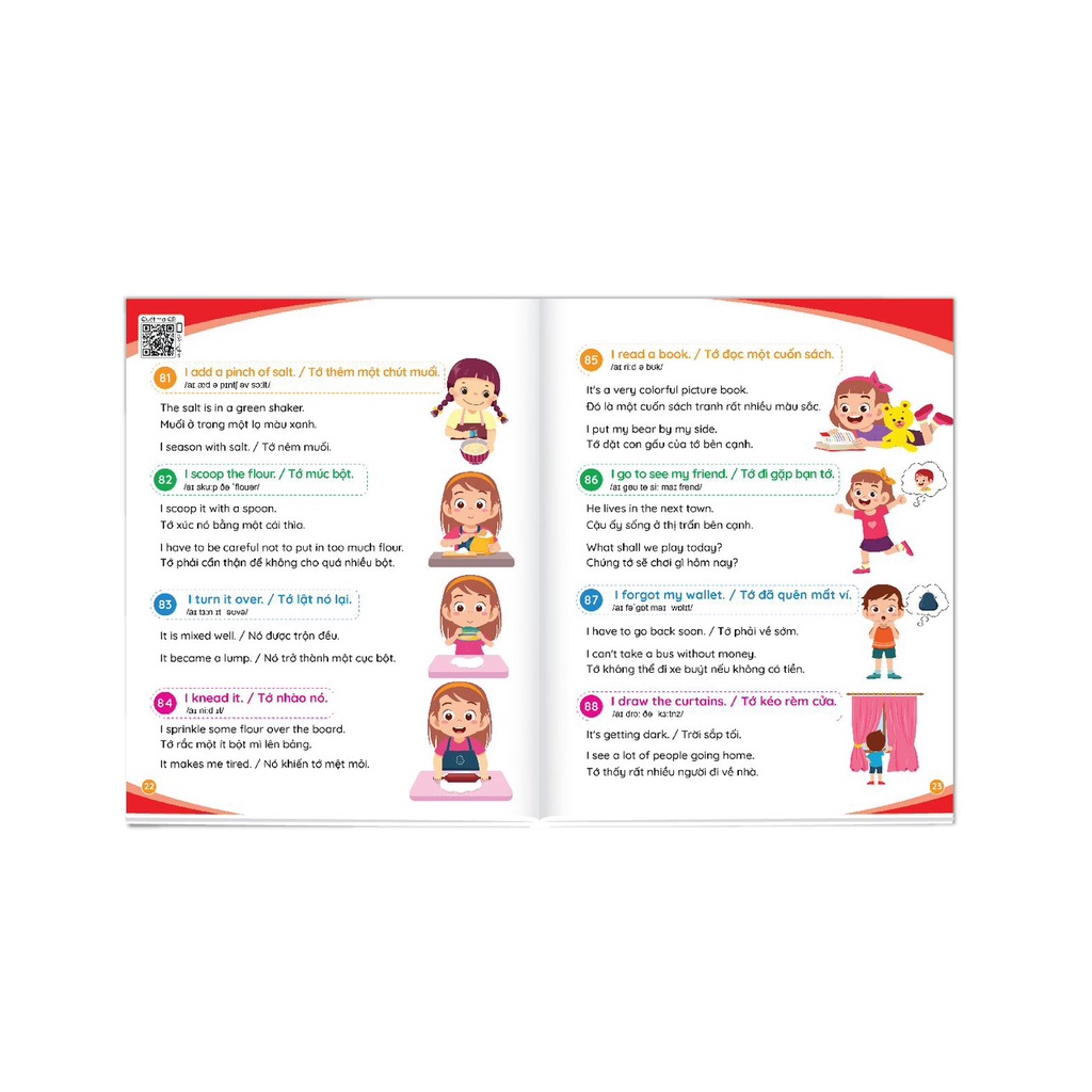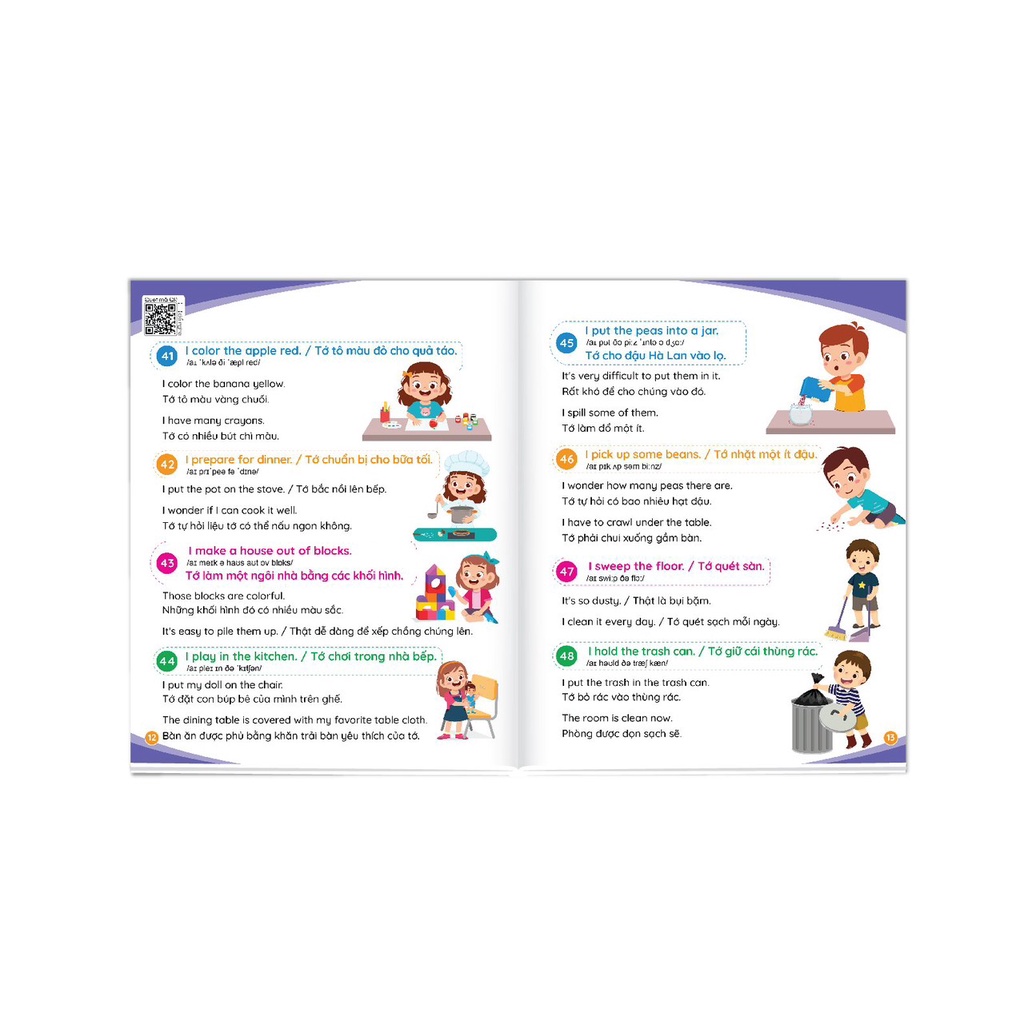 ❖ Sách có kèm file nghe quét mã QR với giọng đọc tiếng Anh chuẩn để cha mẹ và con cùng nghe và tắm ngôn ngữ mỗi ngày.
