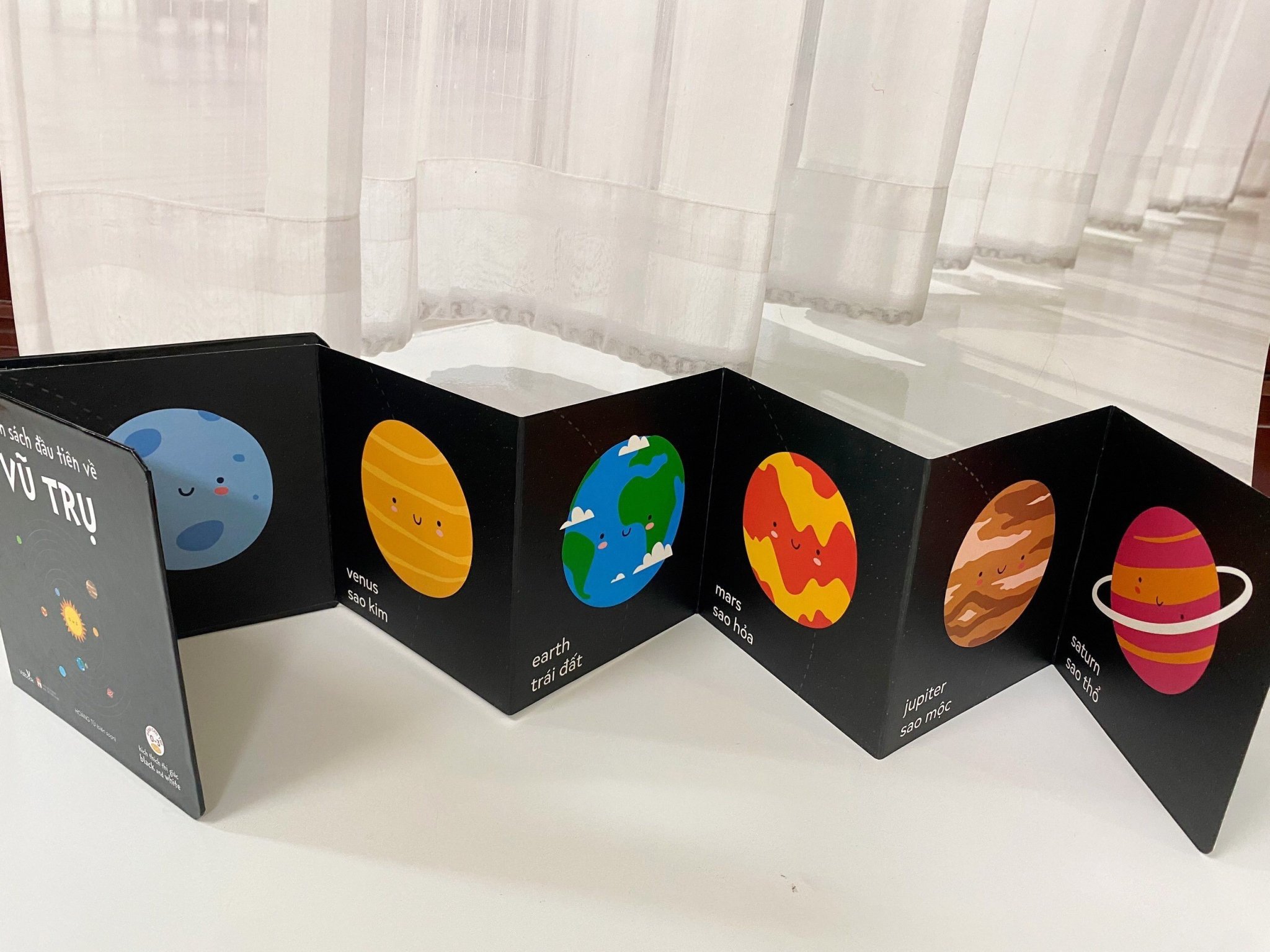 CUỐN SÁCH ĐẦU TIÊN VỀ VŨ TRỤ (song ngữ Anh - Việt) là cuốn sách thứ 4 nằm trong bộ sách zigzac Kích thích thị giác black and white - bộ sách bán khá chạy của Vizibook đã chính thức phát hành.