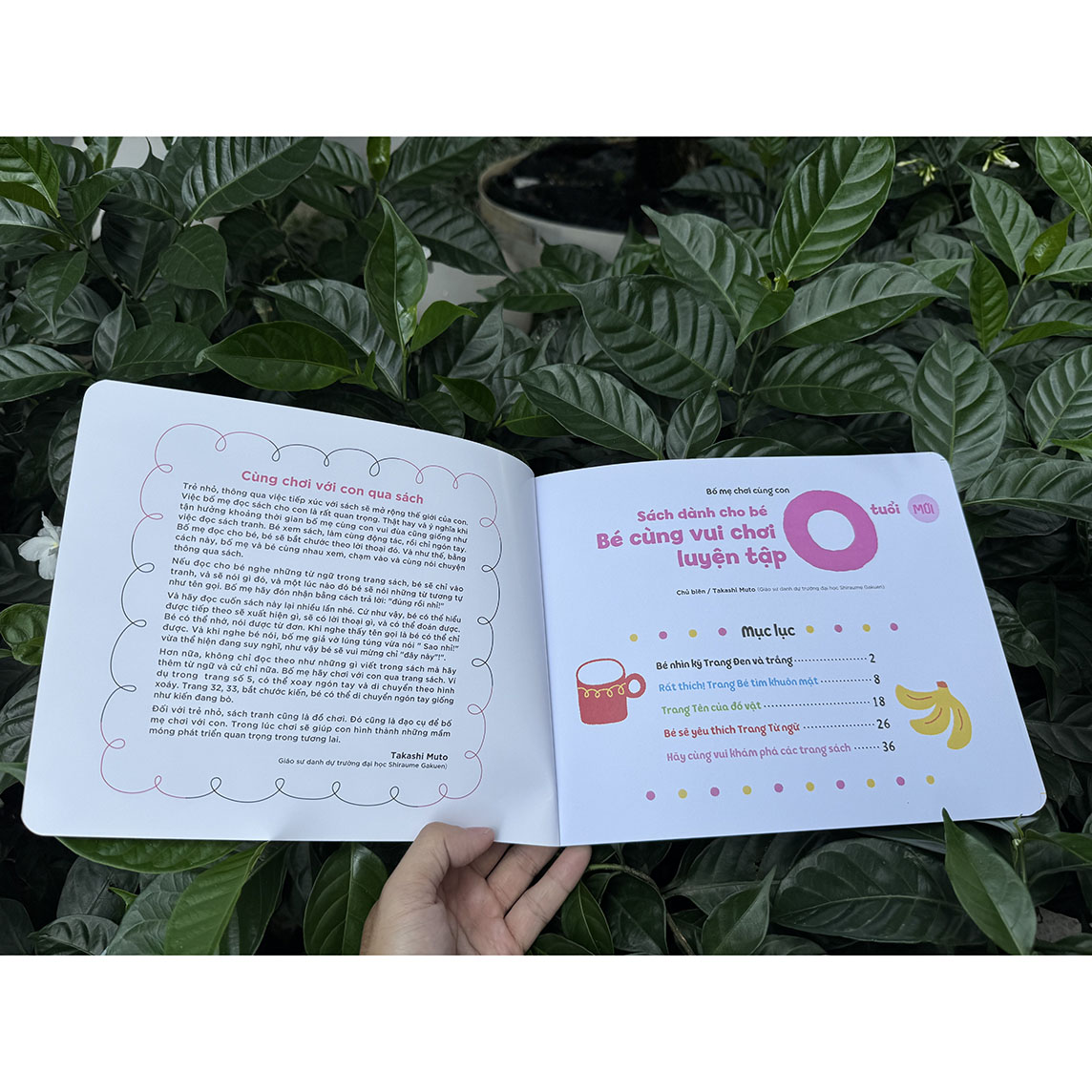 “Sách dành cho bé 0 tuổi - Bé cùng vui chơi luyện tập” có thiết kế phối màu tương phản mạnh mẽ với các trò chơi “khuôn mặt'', từ tượng thanh, và “Ú, òa!” mà bé yêu thích. Quyển sách này hướng đến việc hình thành mối quan hệ gia đình gắn bó cho trẻ ngay trong giai đoạn 0 tuổi cực kỳ quan trọng, bằng việc tạo ra thời gian tương tác cho các thành viên trong gia đình.