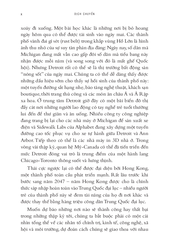 Tác giả Parag Khanna "tái xuất" với một tác phẩm vô cùng cuốn hút bàn về những tác động toàn cầu chực chờ của hiện tượng hàng tỉ người đang dịch chuyển. Không chỉ là sự dịch chuyển của con người mà còn là của hàng hóa, tiền bạc, dữ liệu giữa các thành phố trong các quốc gia và giữa các quốc gia trên thế giới những thập niên sau đại dịch Covid-19. Tác giả cố gắng trả lời 2 câu hỏi: (1) Vì sao con người dịch chuyển? (2) Điều gì sẽ xảy ra khi con người ta dịch chuyển? Những đặc điểm nhân khẩu vĩ mô này là những yếu tố thu hút của tác phẩm. Một cuốn sách mang tính dự báo tuyệt vời với những phân tích sắc sảo, thể hiện sự am hiểu lịch sử, địa lý, kinh tế của tác giả.
