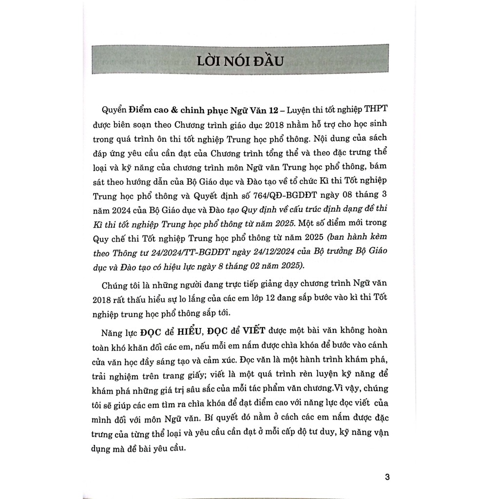 Nhà xuất bản: NXB Dân Trí Tác giả: Nhiều tác giả Loại bìa: Bìa Mềm Số trang: 159 Năm xuất bản: 2025   Điểm Cao Và Chinh Phục Ngữ Văn 12 Luyện Thi TN THPT Quyển Điểm cao & chinh phục Ngữ Văn 12 – Luyện thi tốt nghiệp THPT được biên soạn theo Chương trình giáo dục 2018 nhằm hỗ trợ cho học sinh trong quá trình ôn thi tốt nghiệp Trung học phổ thông. Nội dung của sách đáp ứng yêu cầu cần đạt của Chương trình tổng thể và theo đặc trưng thể loại và kỹ năng của chương trình môn Ngữ văn Trung học phổ thông, bám sát theo hướng dẫn của Bộ Giáo dục và Đào tạo về tổ chức Kì thi Tốt nghiệp Trung học phổ thông và Quyết định số 764/QĐ-BGDĐT ngày 08 tháng 3 năm 2024 của Bộ Giáo dục và Đào tạo Quy định về cấu trúc định dạng đề thi Kì thi tốt nghiệp Trung học phổ thông từ năm 2025. Một số điểm mới trong Quy chế thi Tốt nghiệp Trung học phổ thông từ năm 2025 (ban hành kèm theo Thông tư 24/2024/TT-BGDĐT ngày 24/12/2024 của Bộ trưởng Bộ Giáo dục và Đào tạo có hiệu lực ngày 8 tháng 02 năm 2025). Chúng t...