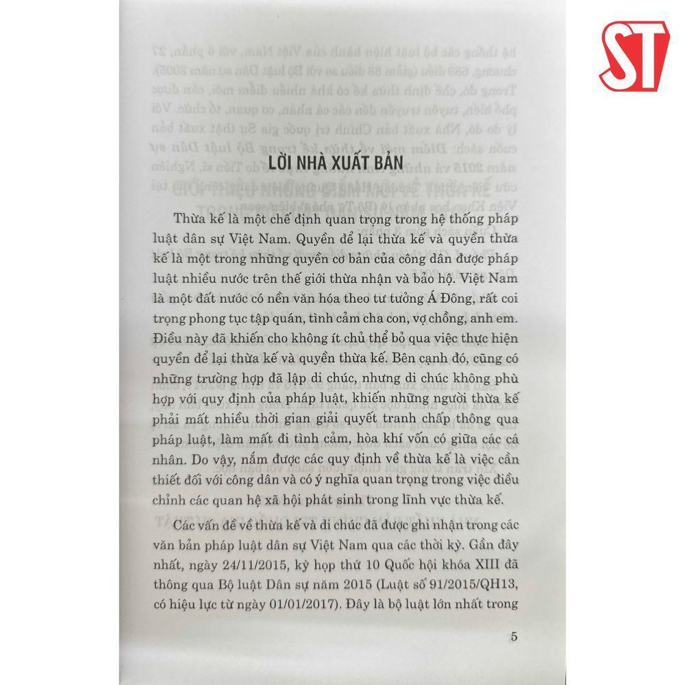 Các vấn đề về thừa kế và di chúc đã được ghi nhận trong các văn bản pháp luật dân sự Việt Nam qua các thời kỳ. Gần đây nhất, ngày 24-11-2015, kỳ họp thứ 10 Quốc hội khóa XIII đã thông qua Bộ luật dân sự năm 2015 (Luật số 91/2015/QH13, có hiệu lực từ ngày 01-01-2017). Đây là bộ luật lớn nhất trong hệ thống các bộ luật hiện hành của Việt Nam, với 6 phần, 27 chương, 689 điều (giảm 88 điều so với Bộ luật dân sự năm 2005). Trong đó, chế định thừa kế có khá nhiều điểm mới, cần được phổ biến, tuyên truyền đến các cá nhân, cơ quan, tổ chức. Với lý do đó, Nhà xuất bản Chính trị quốc gia Sự thật xuất bản cuốn sách: Điểm mới về thừa kế trong Bộ luật dân sự năm 2015 và những tình huống thực tế do Luật gia Trương Hồng Quang công tác tại Viện Khoa học pháp lý (Bộ Tư pháp) biên soạn.